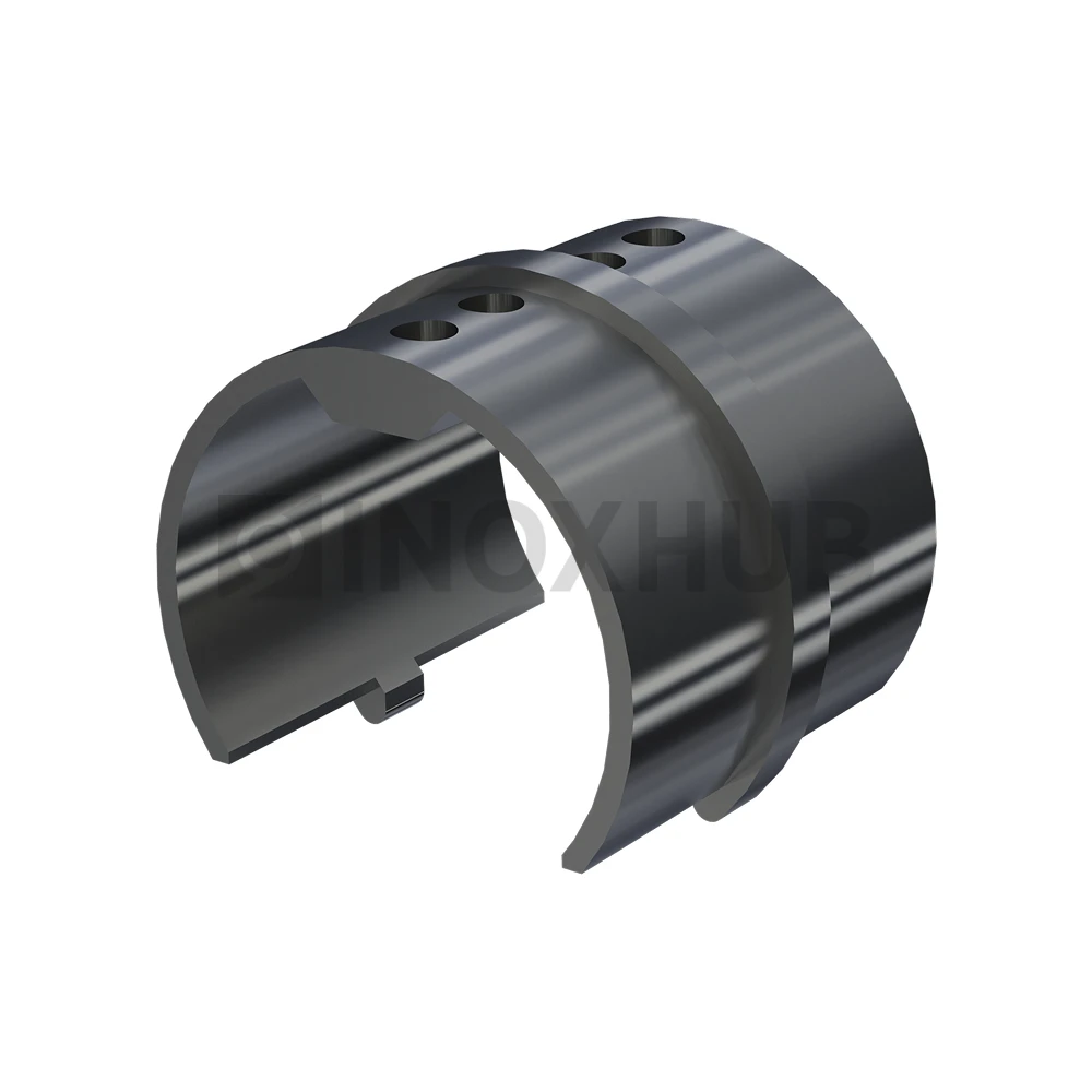 Муфта для соединения труб с пазом. Выполнена из высокопрочной стали AISI 304. Поверхность изделия GRIT 320 — шлифованная.