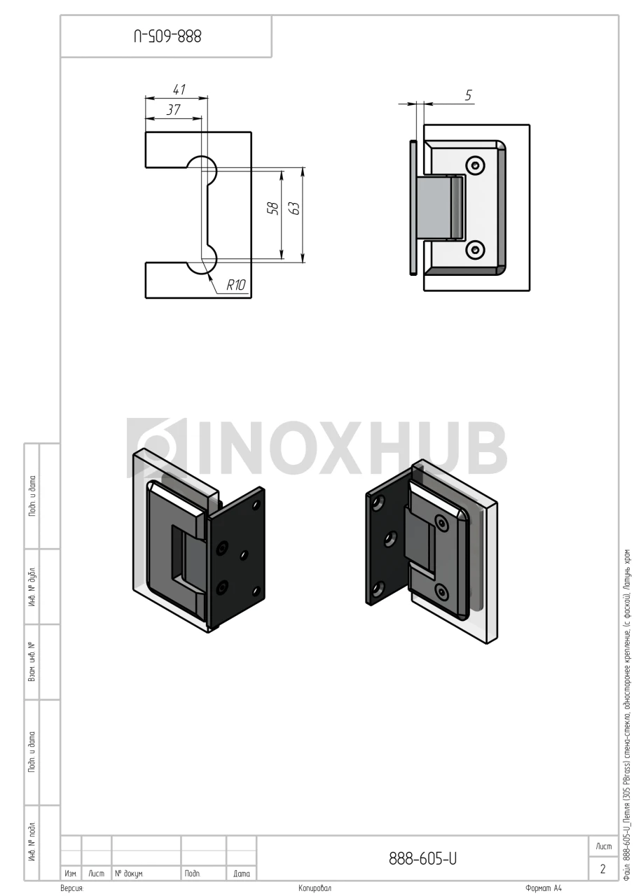 Петля (305 PBrass) стена-стекло, одностороннее крепление, (с фаской), латунь, полированный хром в продаже. Оперативная доставка со склада в Москве. Все товары соответствуют стандартам качества.