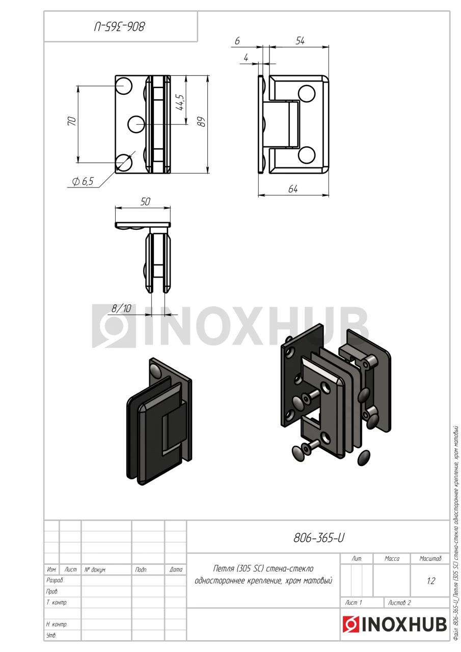 Сборка и монтаж. В комплекте поставляется все необходимое для установки. Соберите петлю и подготовьте стекло согласно схемам на чертежах. Стенки детали имеют увеличенную толщину, поэтому при монтаже стеклянной двери петли не выгибаются.