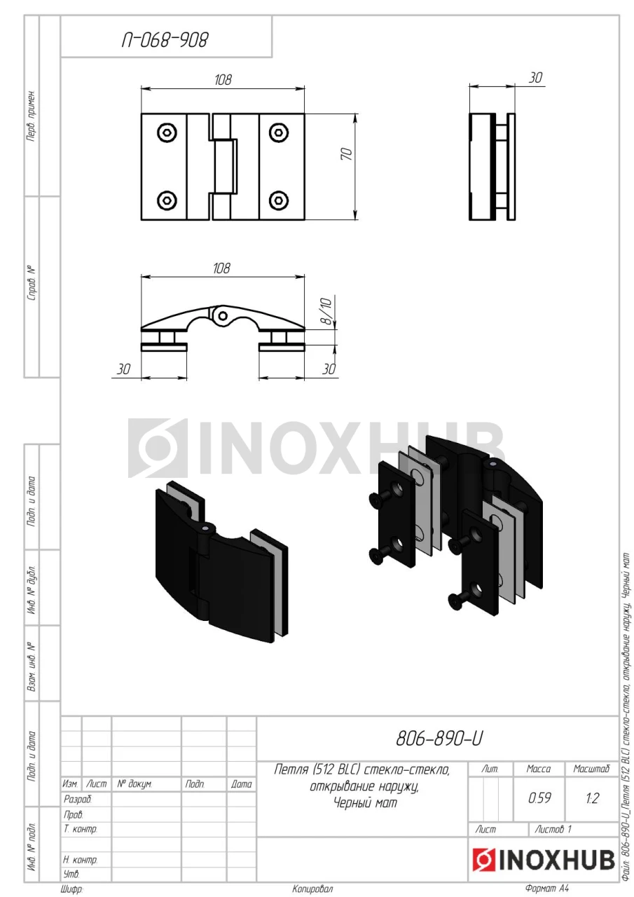 Петля (512 BLC) стекло-стекло, открывание наружу, Черный мат в продаже. Оперативная доставка со склада в Москве. Все товары соответствуют стандартам качества.
