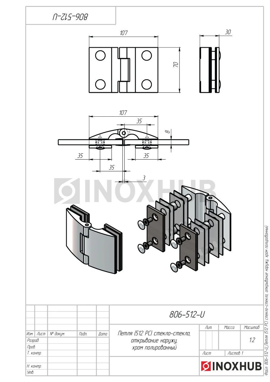 Петля (512 PC) стекло-стекло, открывание наружу, полированный хром