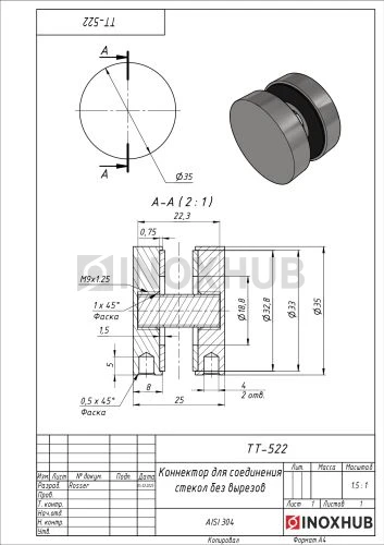 Коннектор (ТТ-522 SSS) стекло-стекло без вырезов, нерж. сталь матовая в продаже. Оперативная доставка со склада в Москве. Все товары соответствуют стандартам качества.