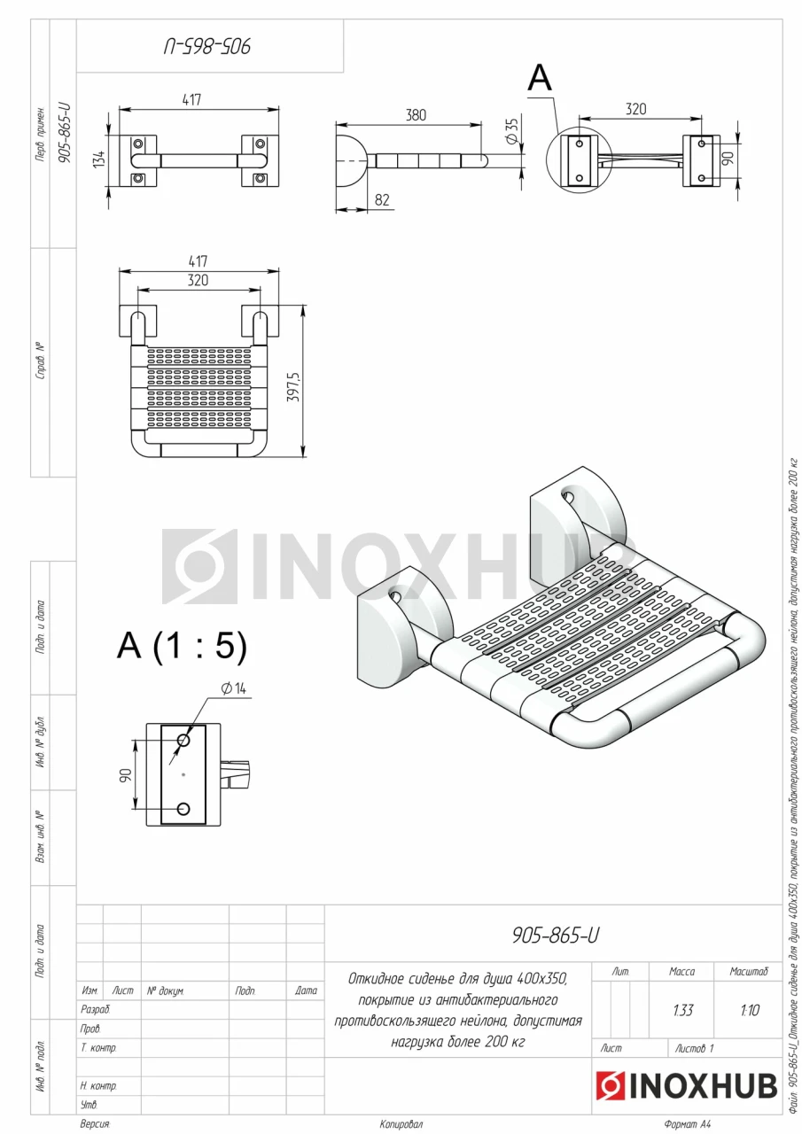 Откидное сиденье, 320×380 мм, антибактериальный нейлон, нагрузка более 200 кг