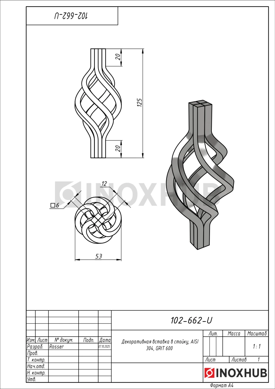 Декоративная вставка в стойку, AISI 304, GRIT 600