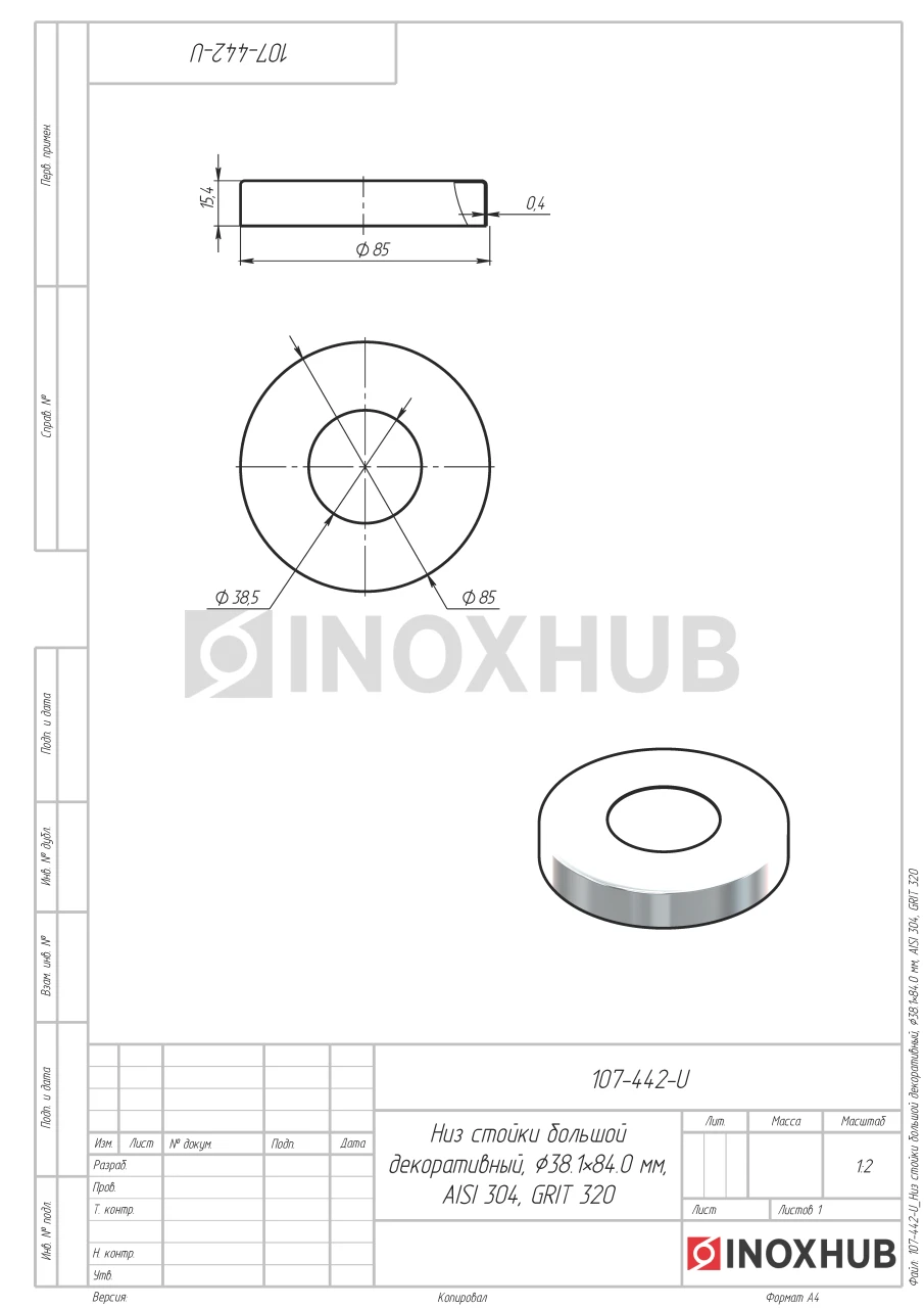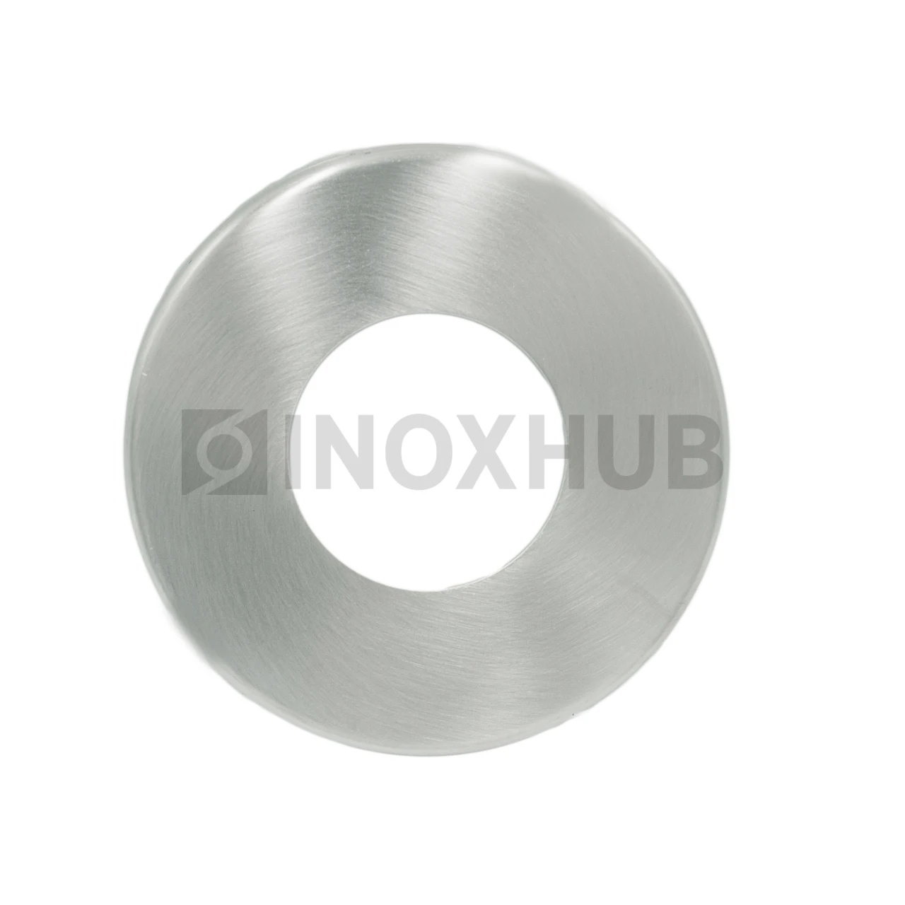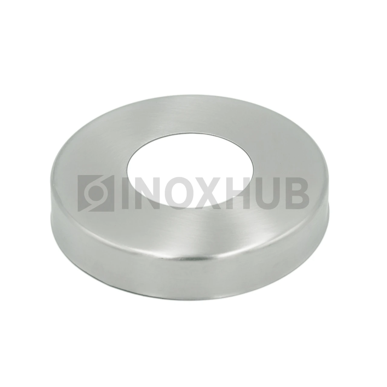 Низ стойки большой из нержавеющей стали марки AISI 304 подходит для установки на улице и в помещении. Деталь нанизывается на трубу диаметром 38,1 мм. Диаметр изделия — 84 мм. Поверхность шлифованная — GRIT 320.