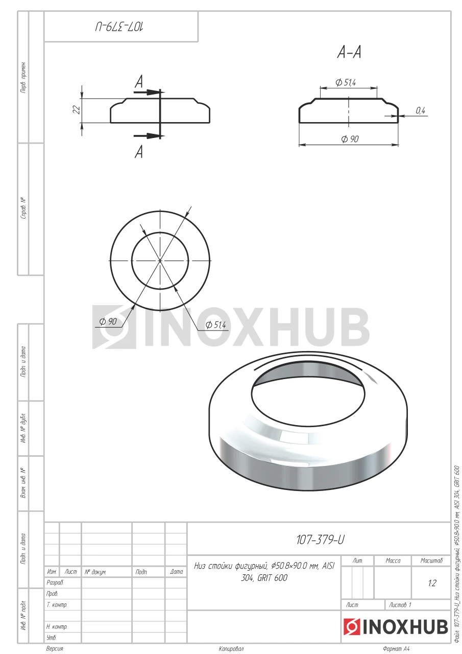 Низ стойки фигурный, Ø50.8×90.0 мм, AISI 304, GRIT 600