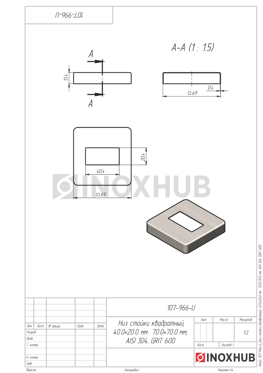 Низ стойки квадратный, 40.0×20.0 мм / 70.0×70.0 мм, AISI 304, GRIT 600 в продаже от 94 ₽/шт. Оперативная доставка со склада в Москве. Все товары соответствуют стандартам качества.