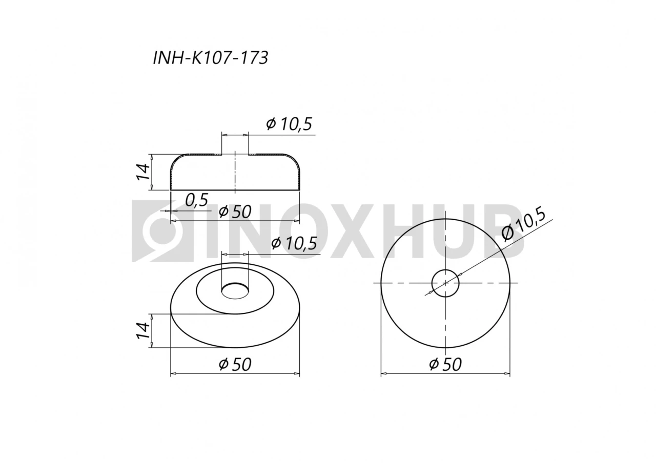 Низ стойки малый декоративный, Ø10.0 мм, AISI 304, GRIT 600