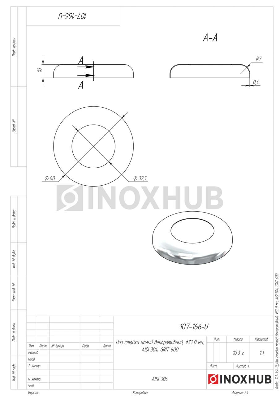 Низ стойки малый декоративный, Ø32.0 мм, AISI 304, GRIT 600