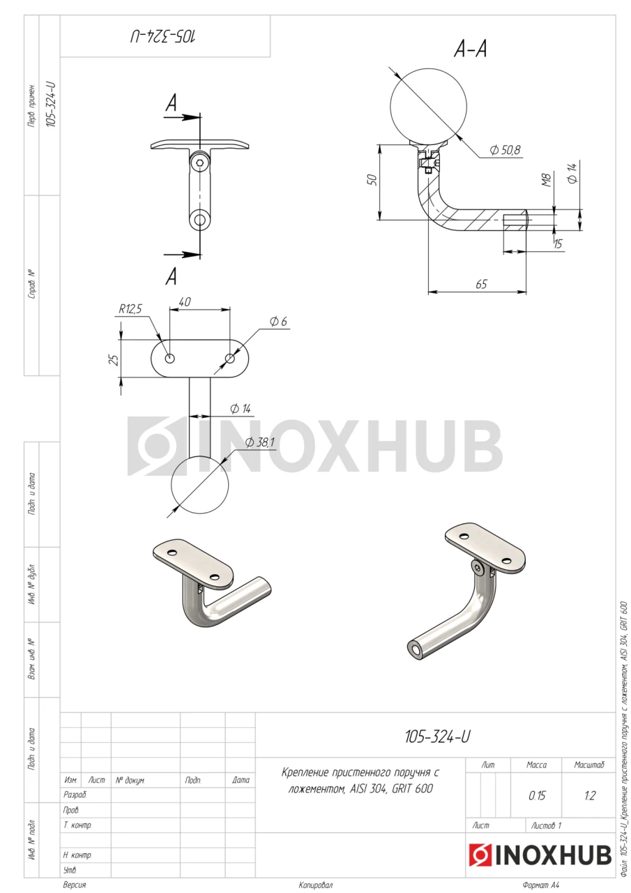 Крепление поручня с ложементом (Ø50.8), AISI 304, GRIT 600