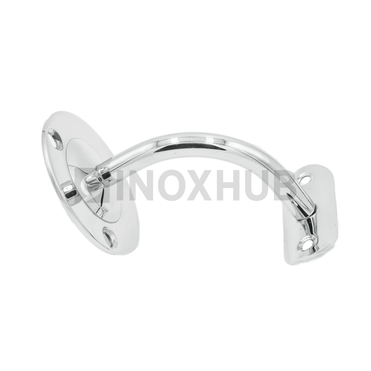 Крепление пристенного поручня изготовлено из стали AISI 201, поэтому подходит для установки только в помещениях. Деталь с ложементом под трубу 50,8 мм имеет глянцевую поверхность GRIT 600.