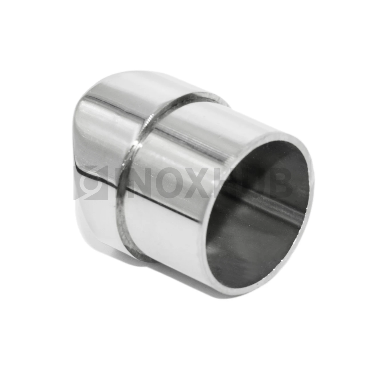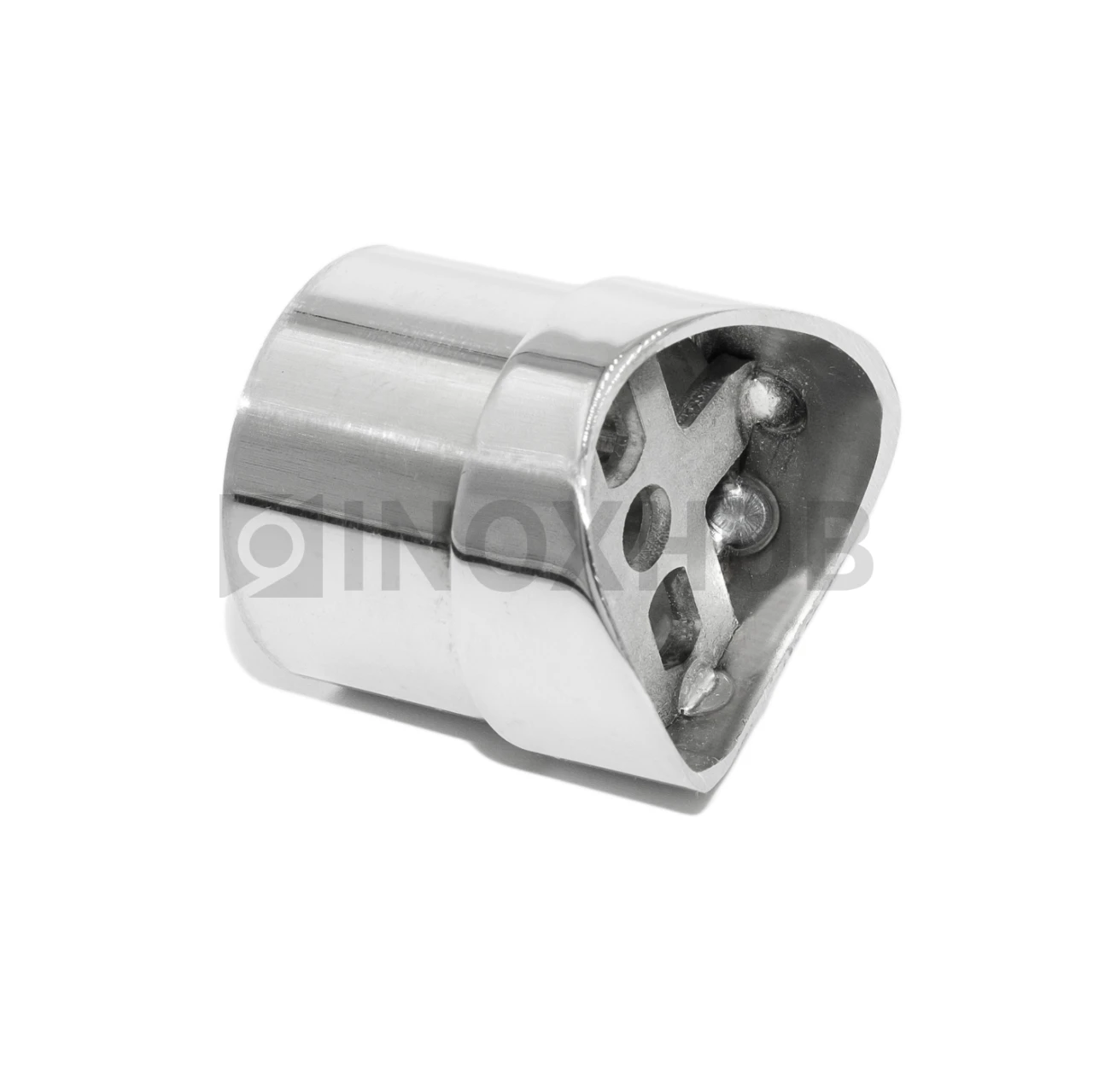 Наконечник седловина. Предназначен для прямых участков ограждений, для соединения стойки диаметром 38,1 мм с поручнем диаметром 50,8 мм под прямым углом. Литая, полированная деталь. Изготовлена из стали AISI 304, что позволяет использовать ее на улице и в помещении.
