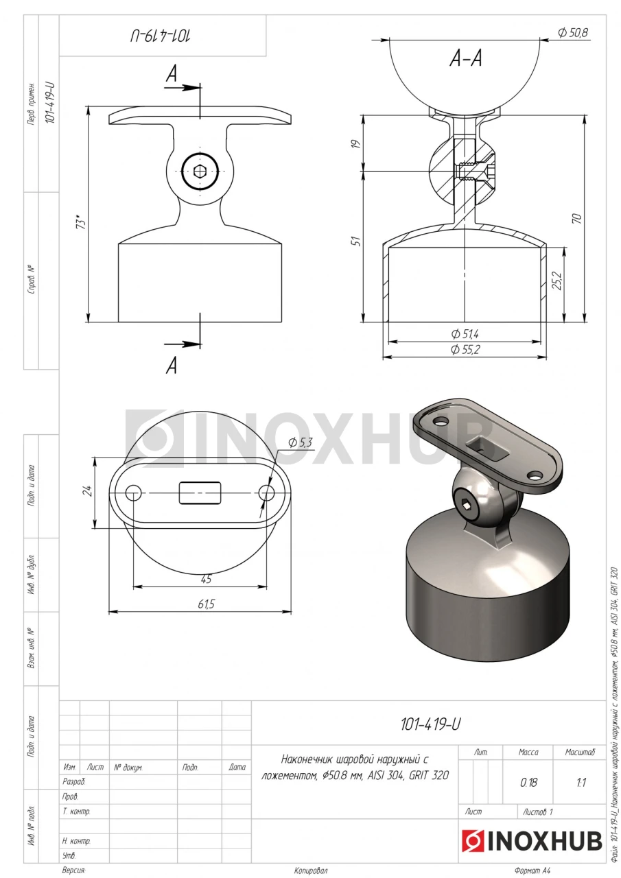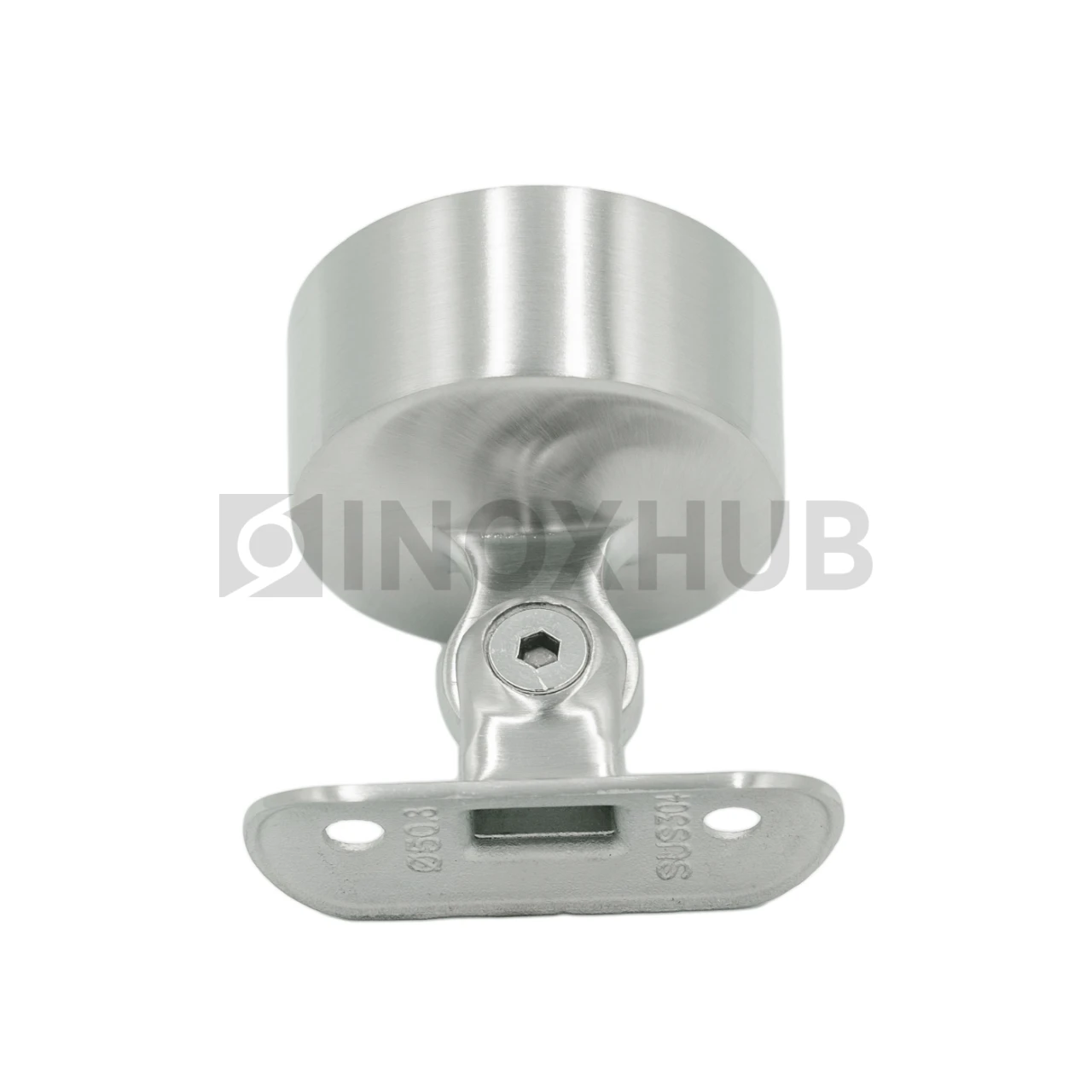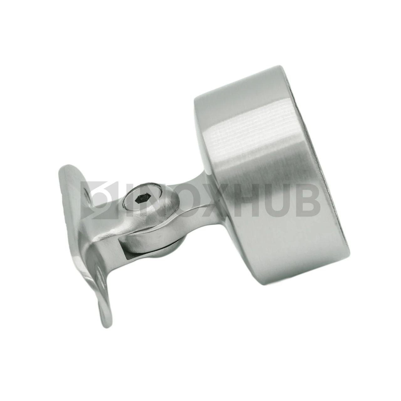 Наконечник используется для установки поручня диаметром 50.8 мм на стойку Ø50.8 мм. Ложемент регулируется под угол наклона, что удобно при монтаже на лестничных маршах. На поверхности предусмотрены отверстия под саморезы — они позволяют надёжно зафиксировать поручень. Наконечник изготовлен из нержавеющей стали AISI 304. Материал устойчив к влаге, температурным перепадам, не поддаётся коррозии, долго сохраняет внешний вид без дополнительной обработки. Отделка GRIT 320 — шлифованная, с мелкой текстурой и равномерной сатиновой поверхностью. Такое покрытие сглаживает мелкие следы эксплуатации и придаёт конструкции аккуратный, неброский внешний вид.