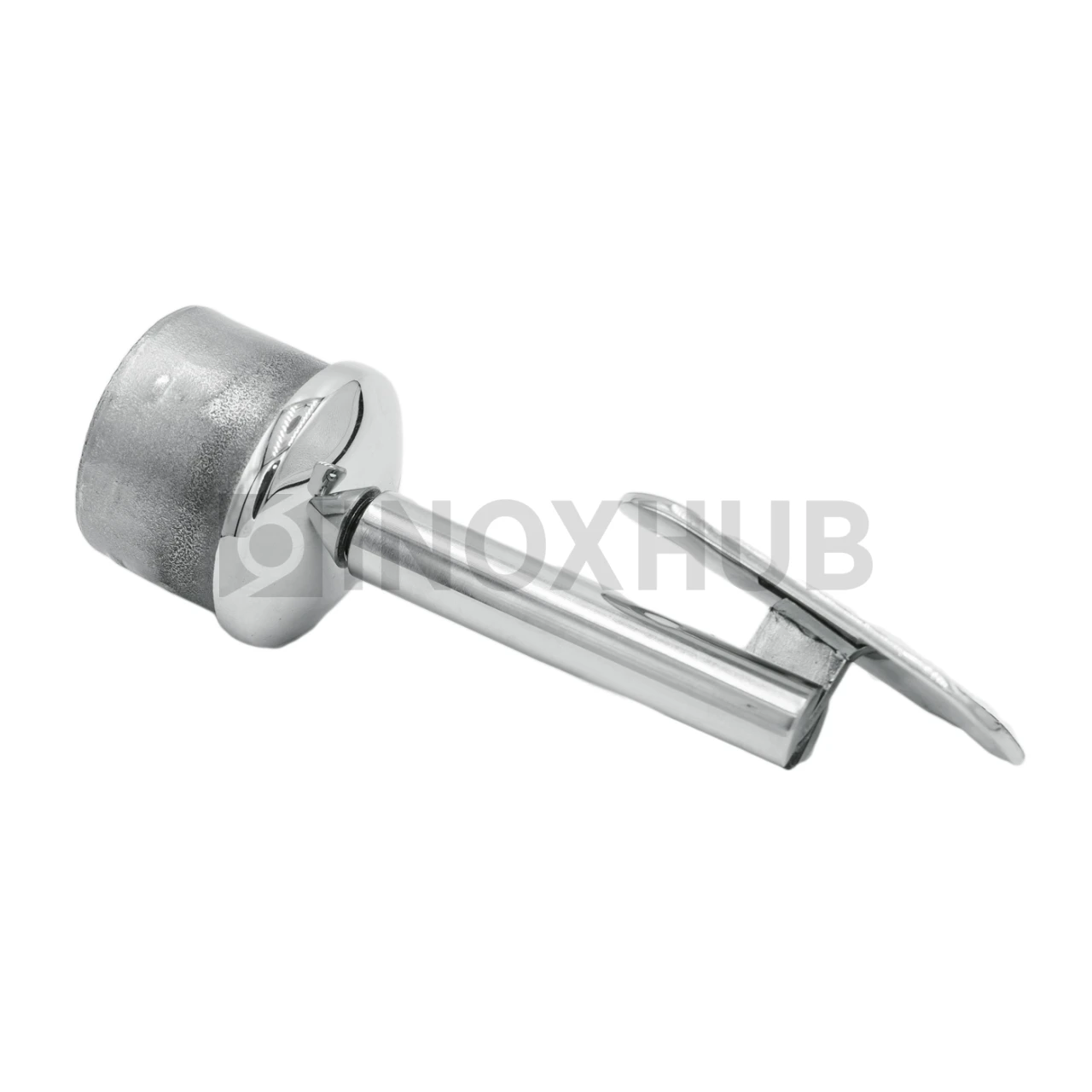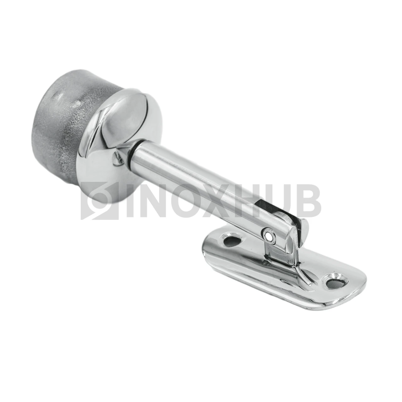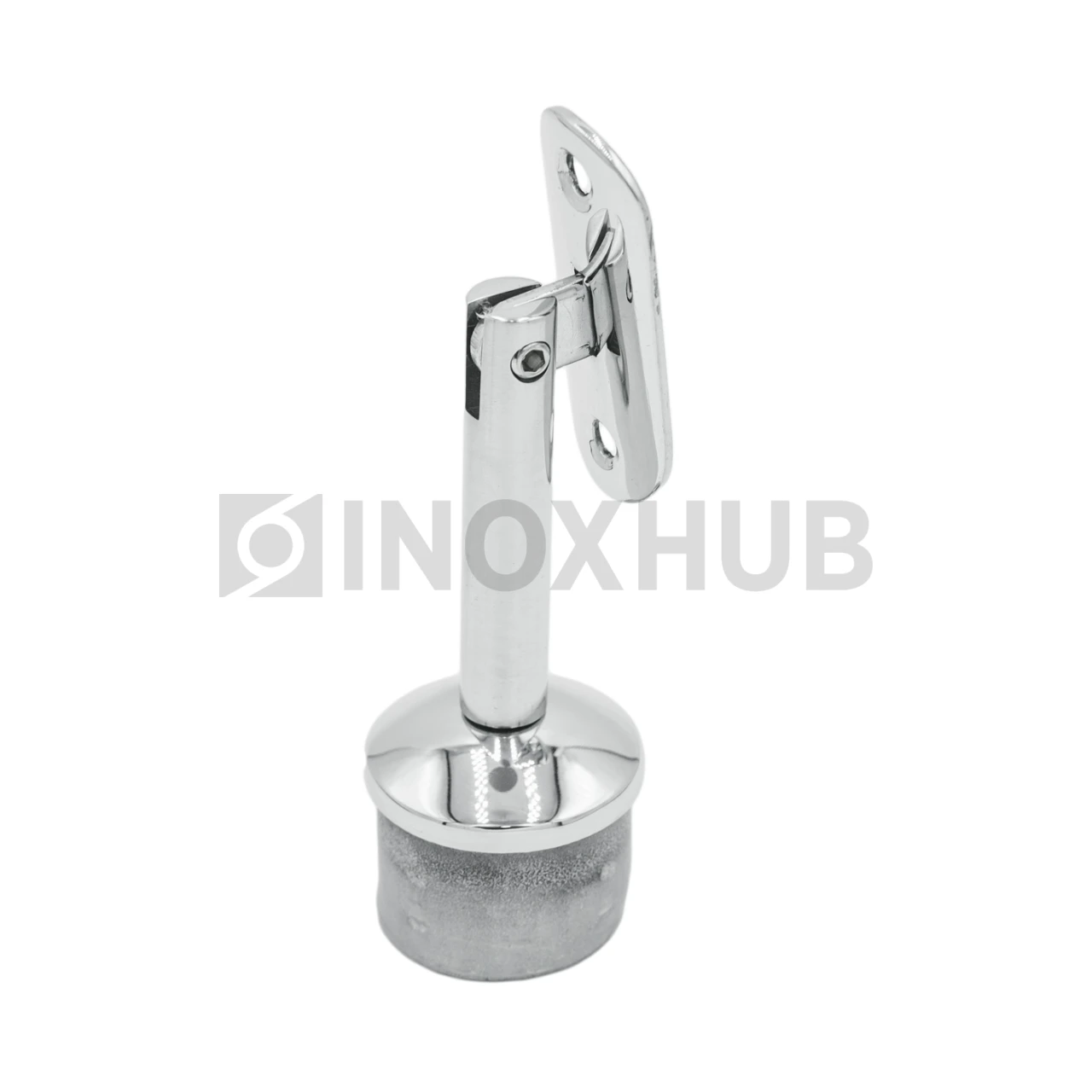 Литой наконечник штырь с ложементом, регулируемый на стойку 38,1 мм под поручень 50,8 мм. Выполнен из стали AISI 304, что делает его пригодным для уличного применения. Поверхность полированная. Подходит для установки на прямые горизонтальные ограждения, а также на лестничные марши. Также может использоваться для установки мебели.