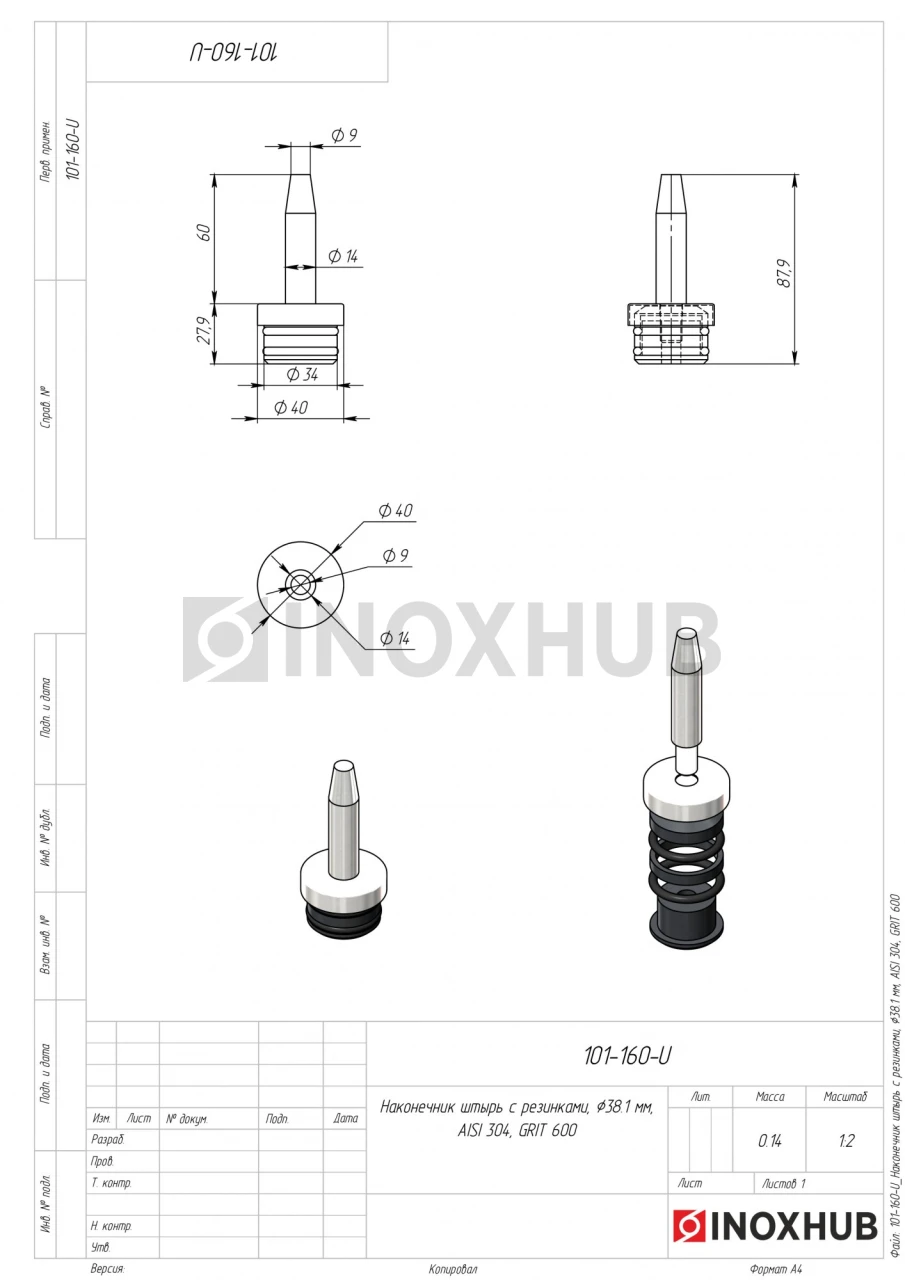 Наконечник штырь с резинками, Ø38.1 мм, AISI 304, GRIT 600