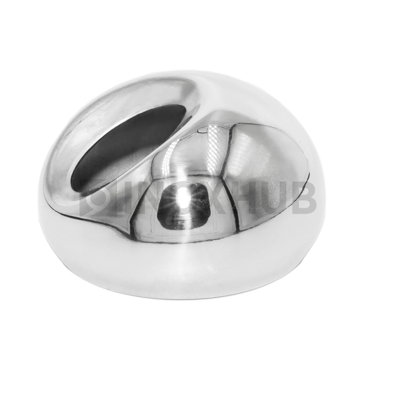 Штампованное соединение поручня из стали AISI 316 подходит для установки в помещениях, на улице, а также вблизи бассейнов, водоемов и других агрессивных сред. Сферический элемент имеет полированную поверхность — GRIT 600.