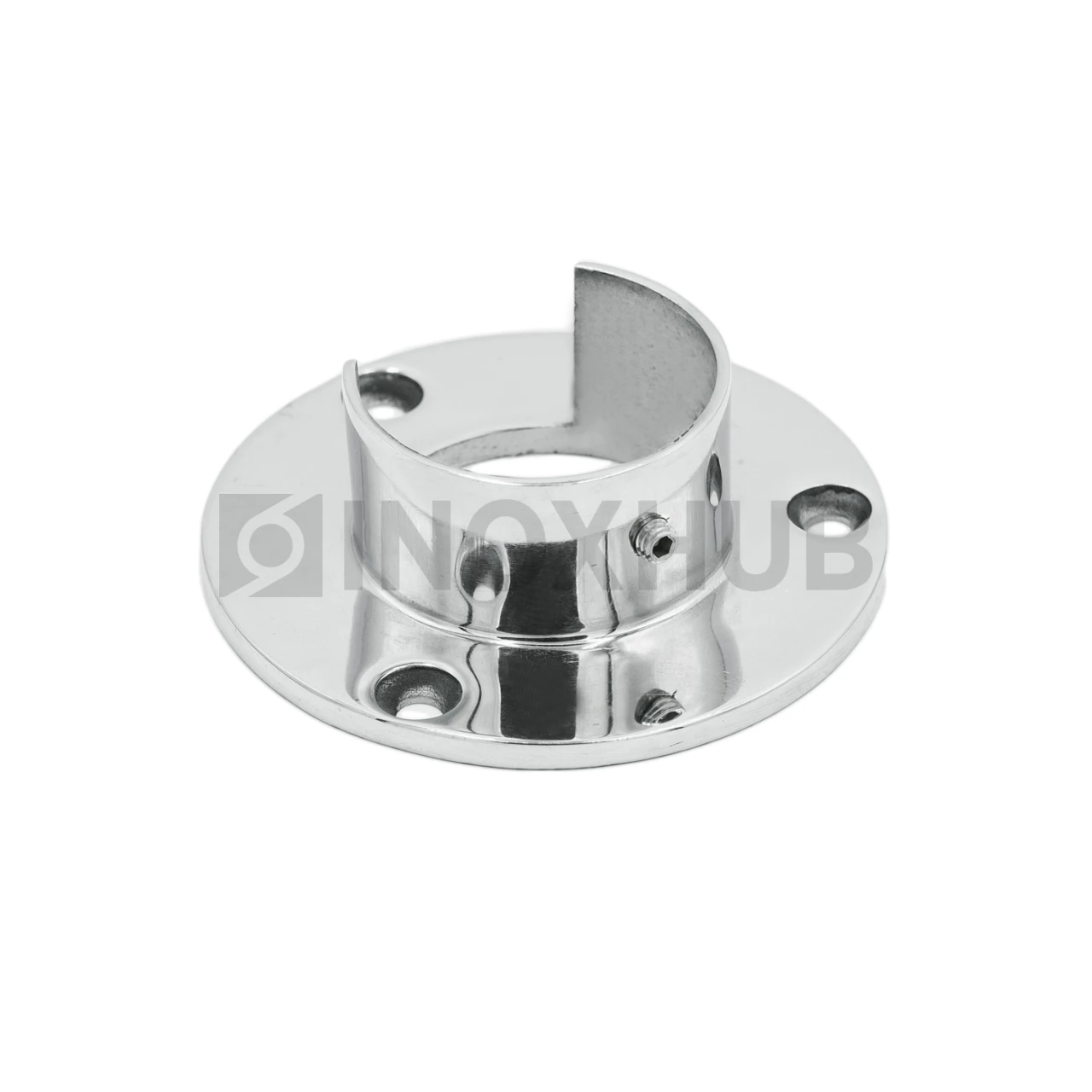 Фланец для поручня с пазом. Выполнен из стали AISI 304. Полированная поверхность маркируется как GRIT 600.