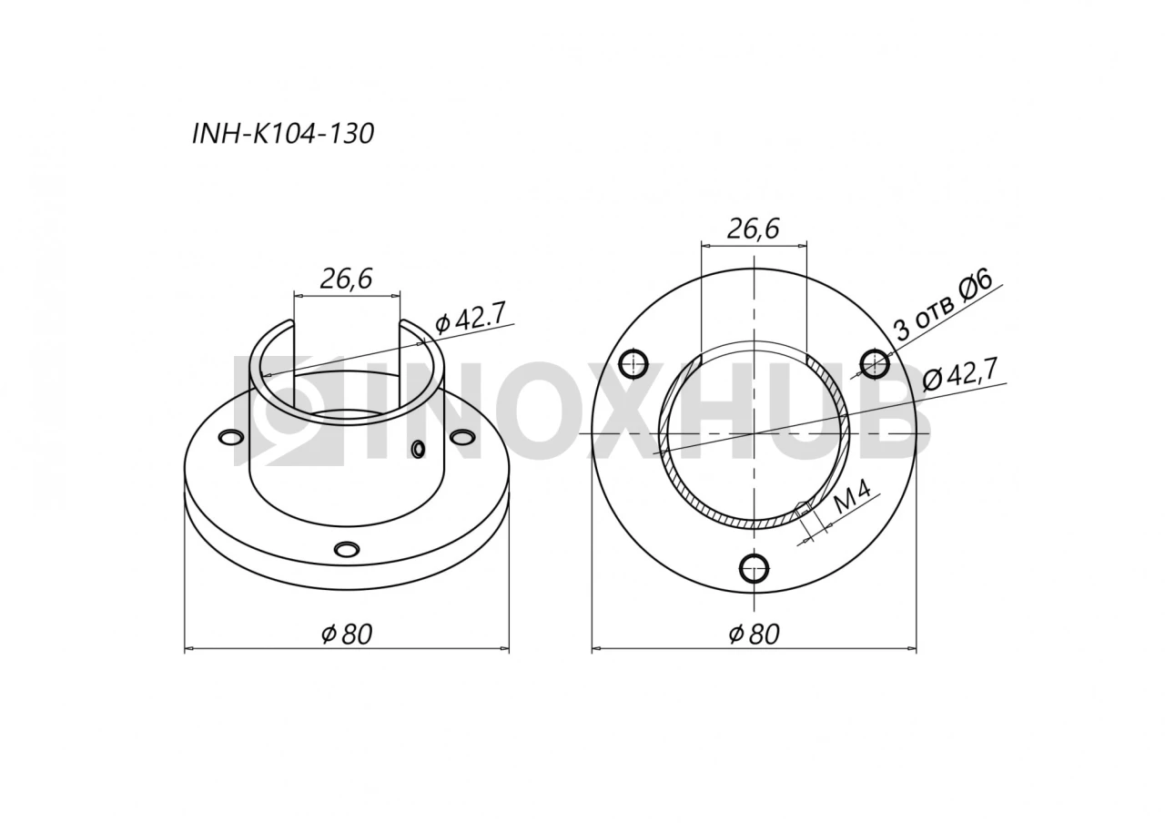 Фланец для поручня с пазом, Ø42.4 мм, AISI 304, GRIT 600