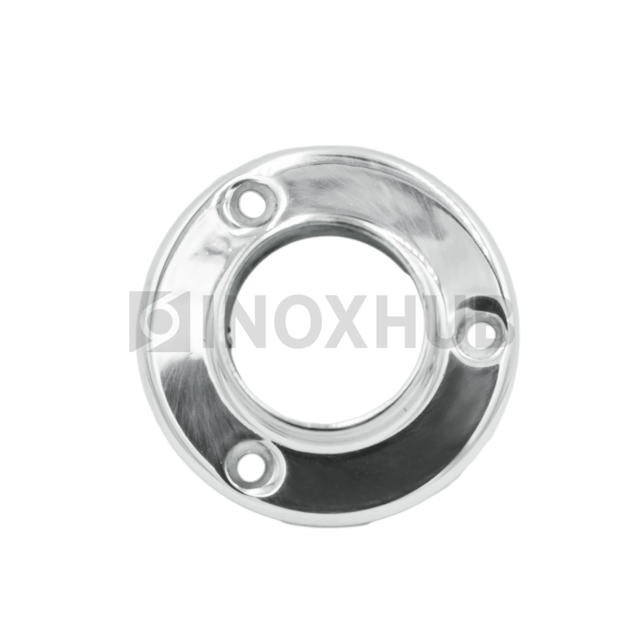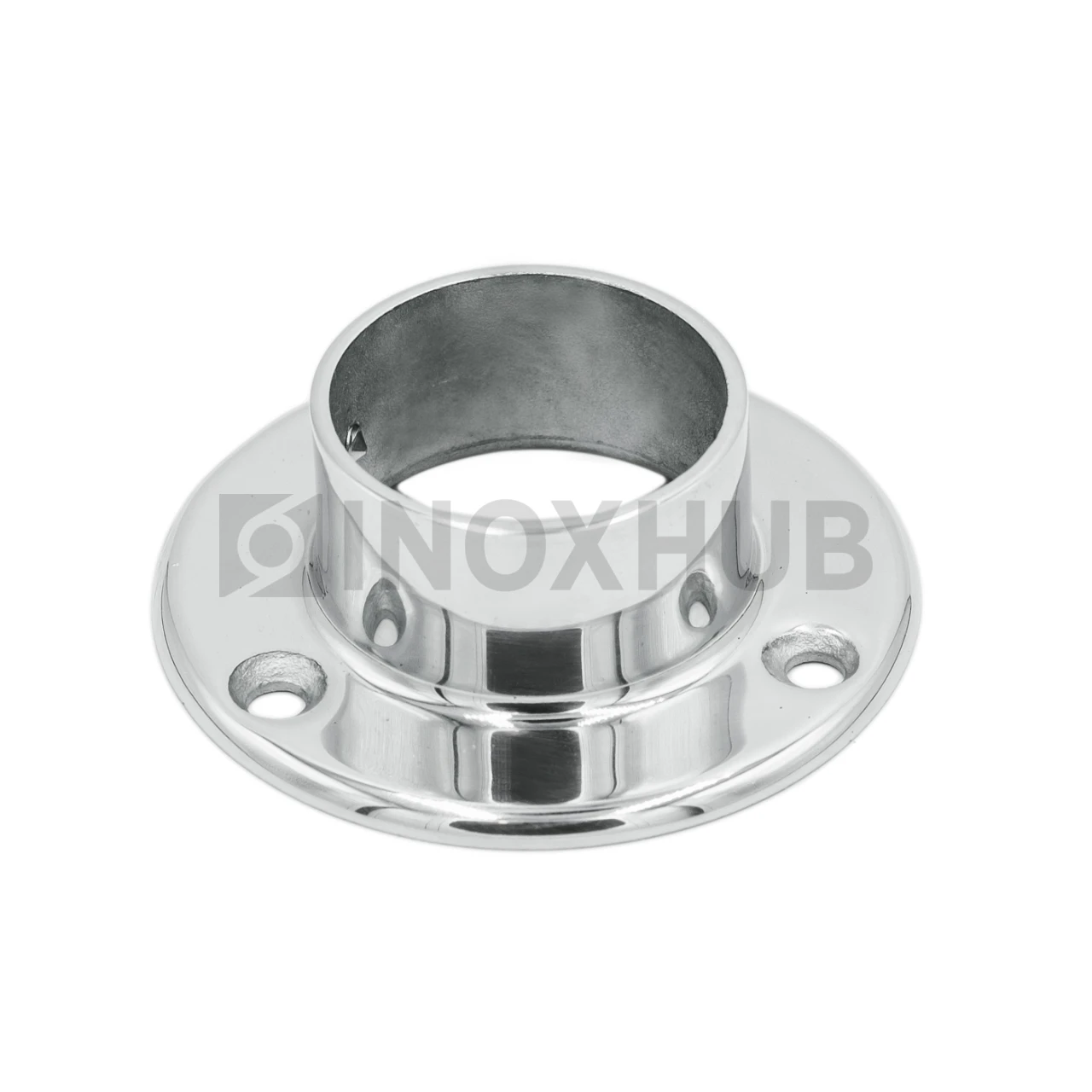Настенный фланец. Выполнен методом литья, что наделяет его высоким уровнем прочности. Для его производства использована сталь AISI 304. Поверхность изделия GRIT 600 — полированная.