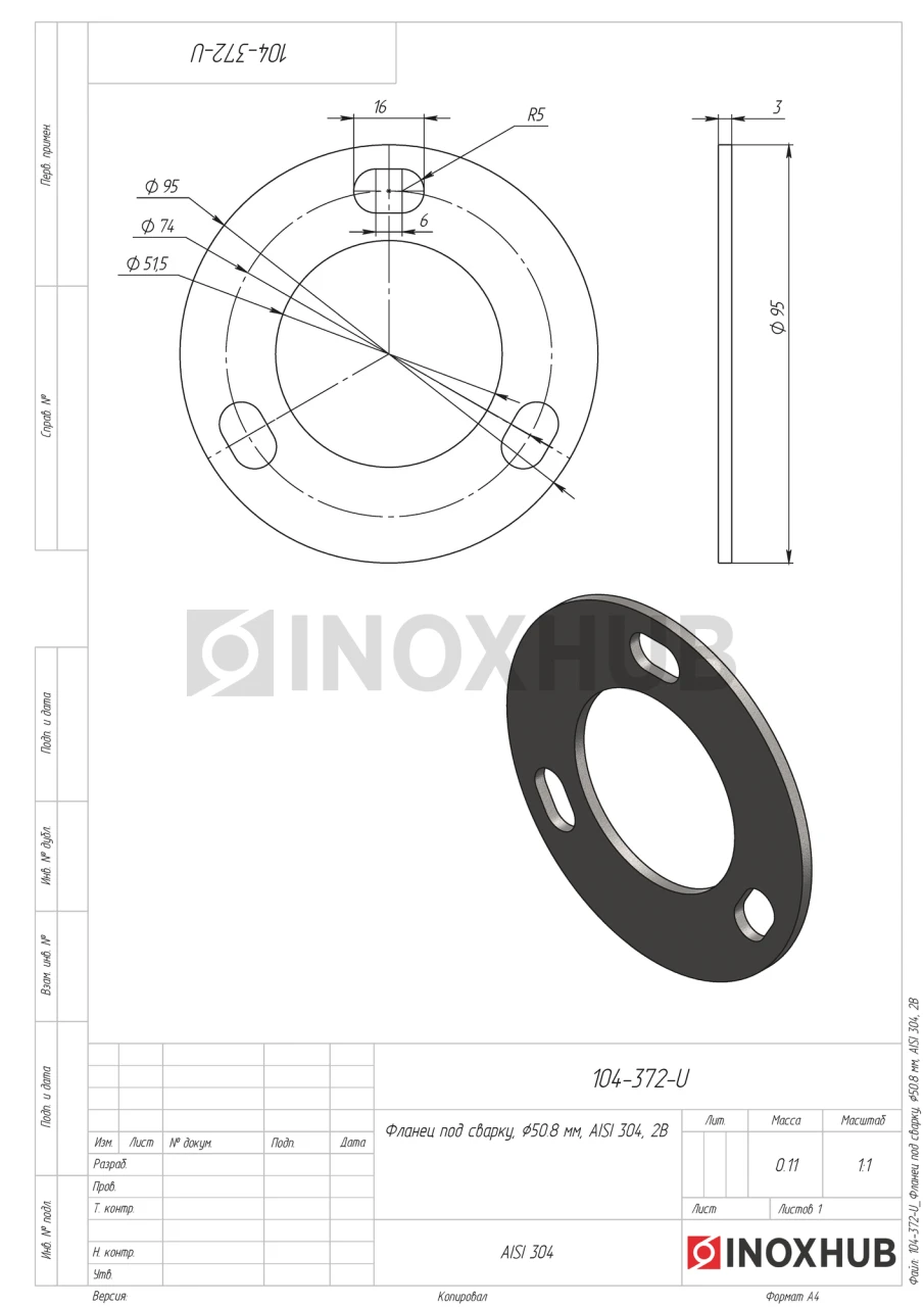 Фланец под сварку, Ø50.8 мм, AISI 304, 2B