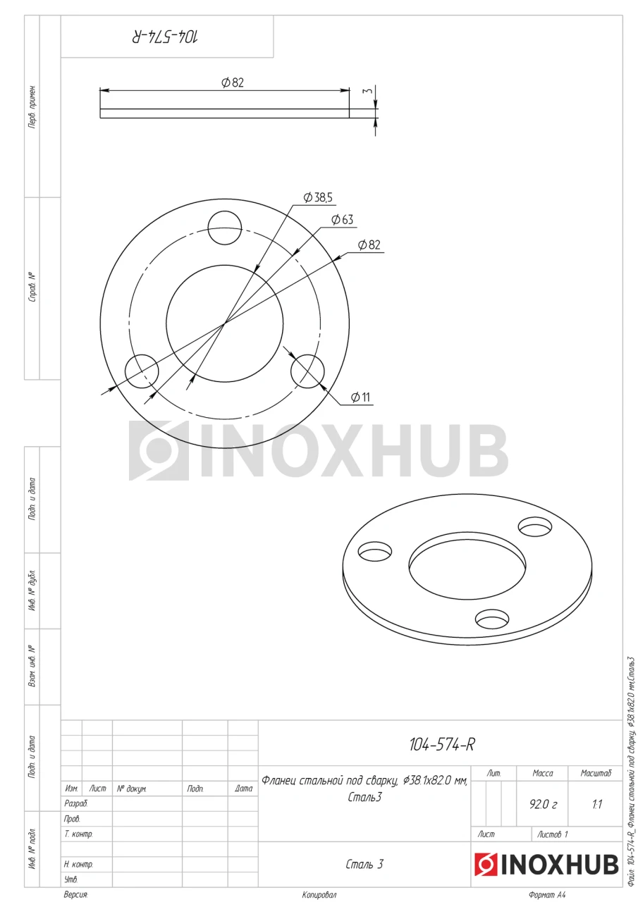 Фланец стальной под сварку, Ø38.1×82.0 мм, Сталь 3