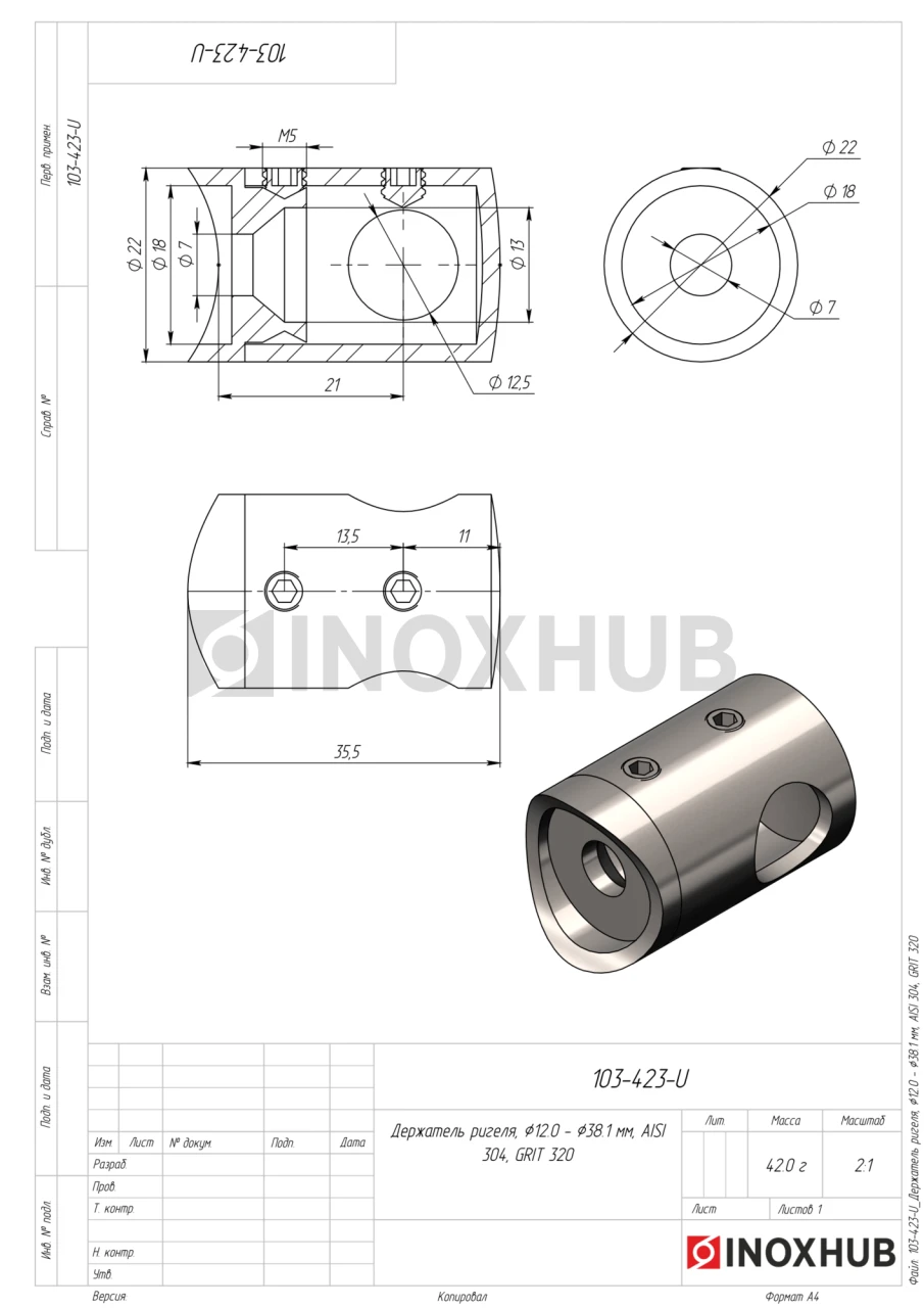 Держатель ригеля, Ø12.0 - Ø38.1 мм, AISI 304, GRIT 320