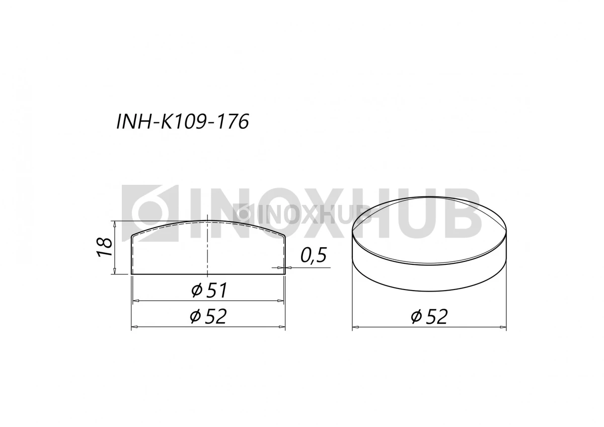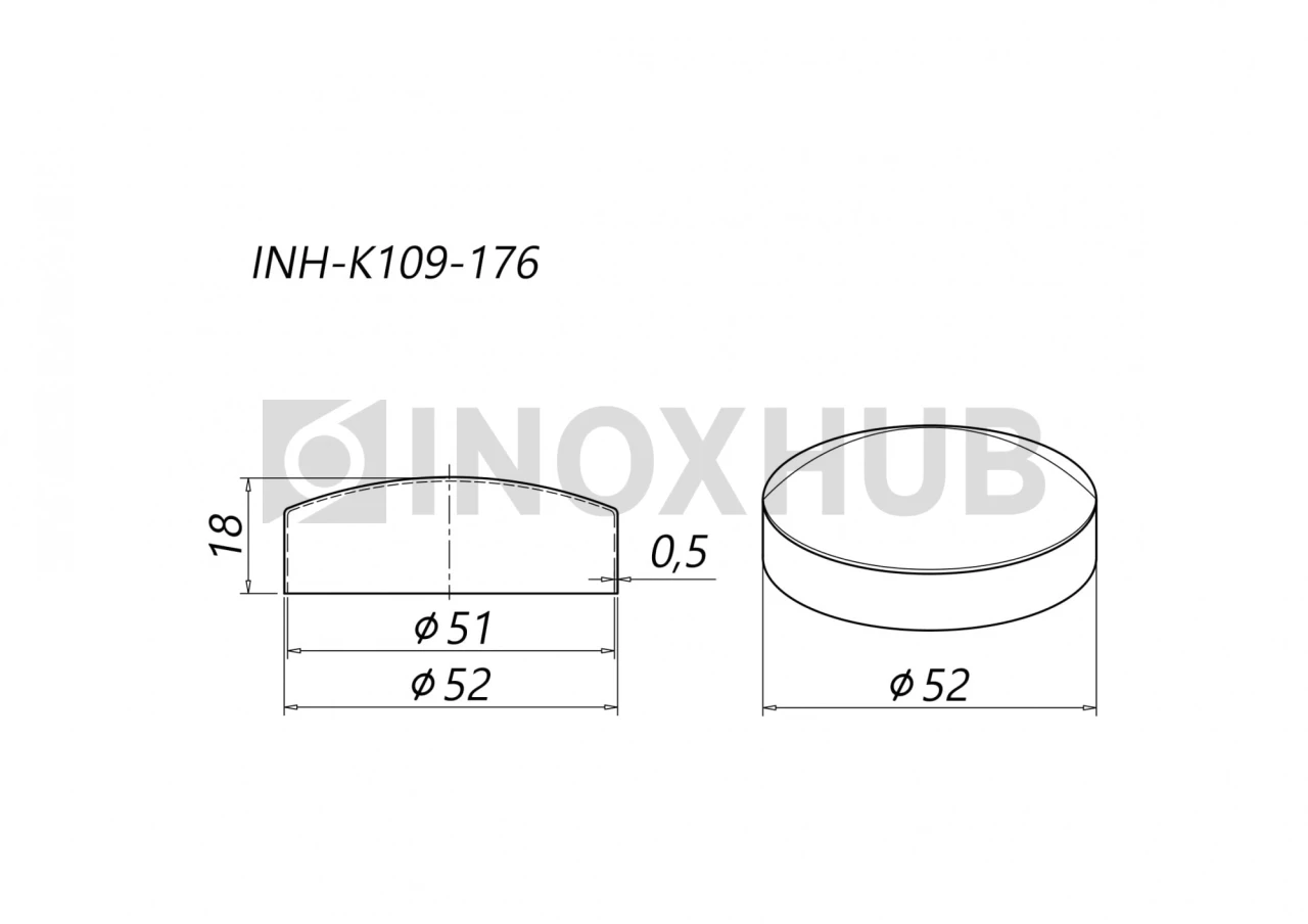 Заглушка внешняя штамп., Ø50.8 мм, AISI 304, GRIT 600