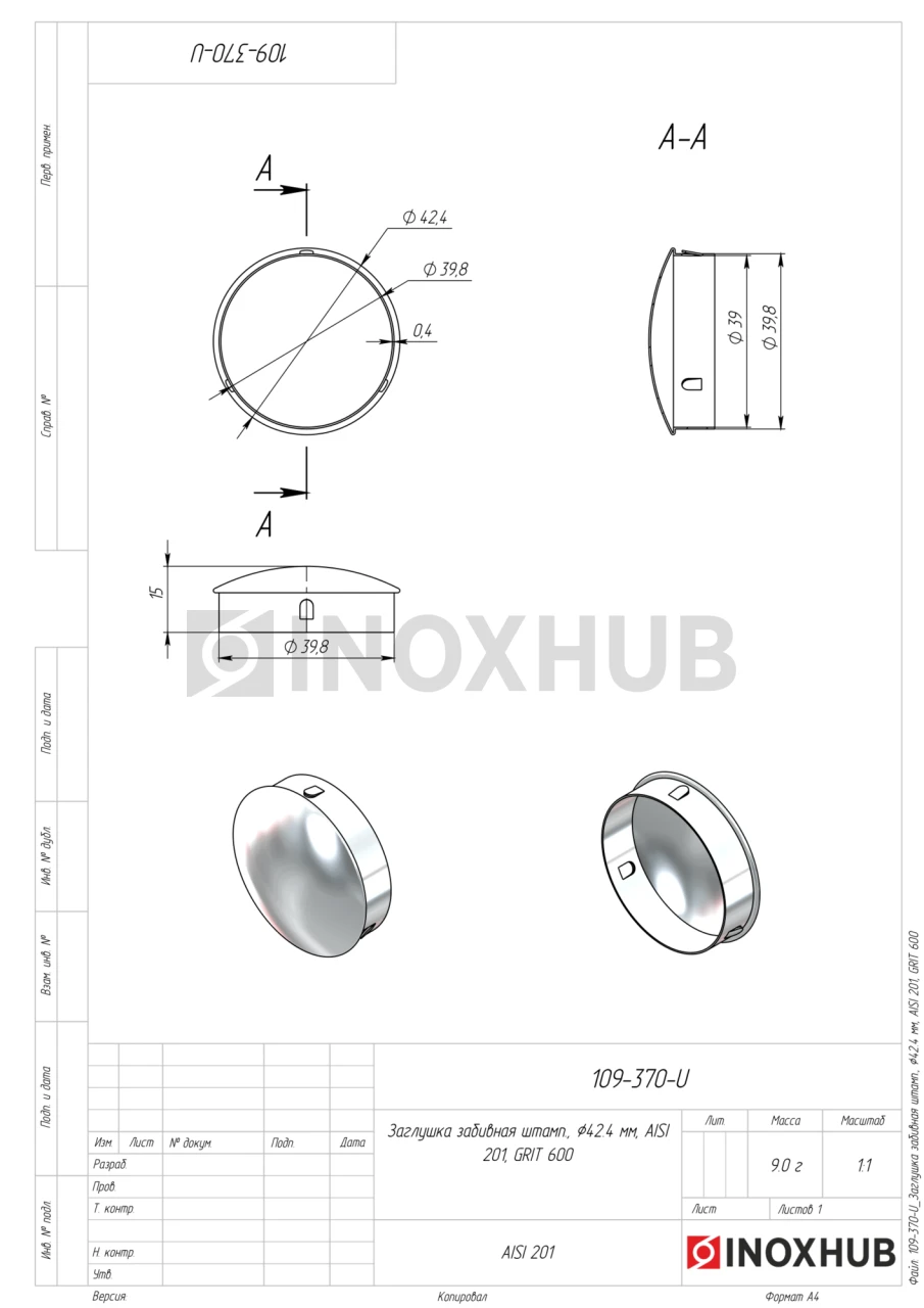 Заглушка забивная штамп., Ø42.4 мм, AISI 201, GRIT 600