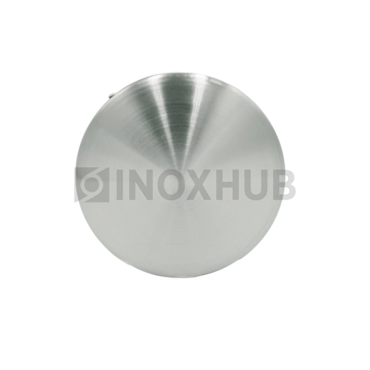 Штампованная забивная заглушка для ограждений с диаметром трубы 50,8 мм. Материал — нержавеющая сталь марки AISI 304, поэтому деталь можно установить на улице или в помещении. Заглушка имеет матовую шлифованную поверхность GRIT 320.