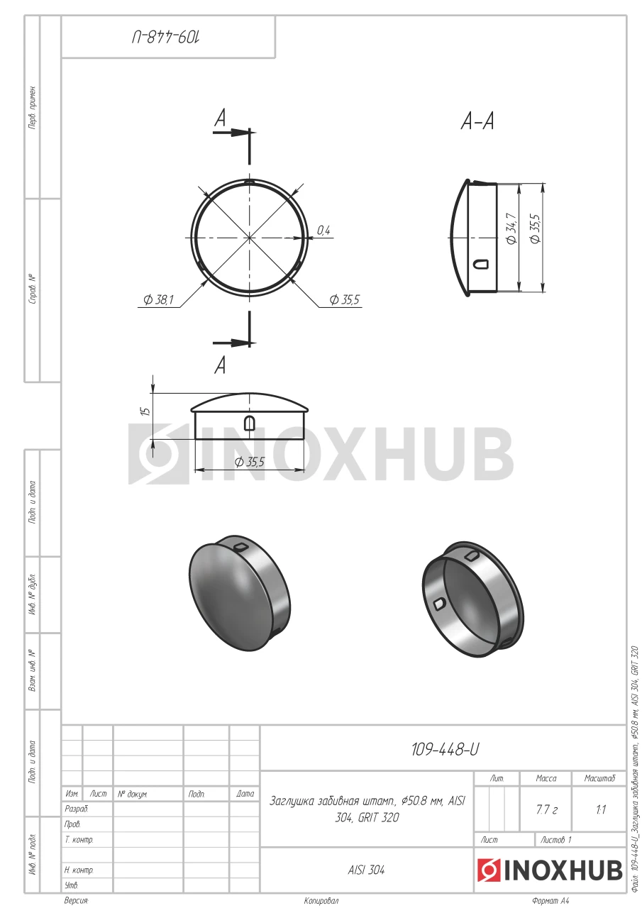 Заглушка забивная штамп., Ø50.8 мм, AISI 304, GRIT 320