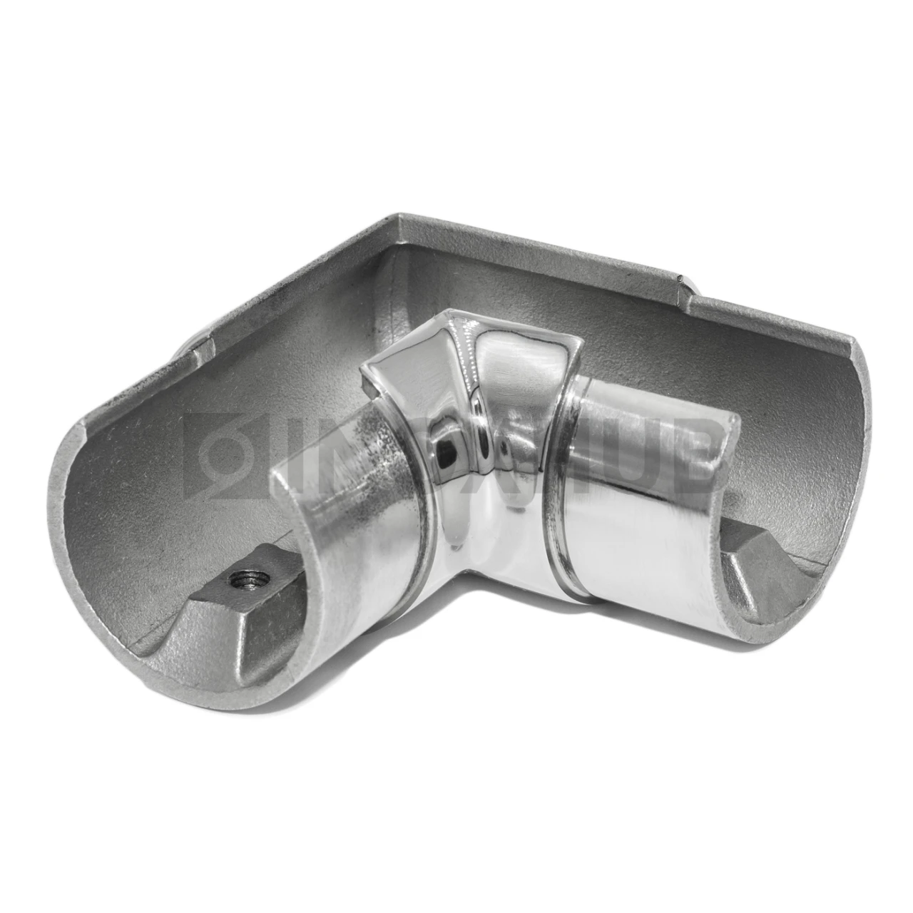 Отвод для поручня с пазом. Сделан из стали AISI 304. Изделие с поверхностью GRIT 600 — полированное.
