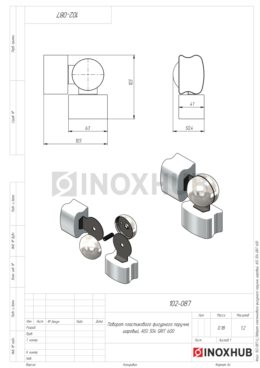 Поворот шаровой для пластикового фигурного поручня, AISI 304, GRIT 600