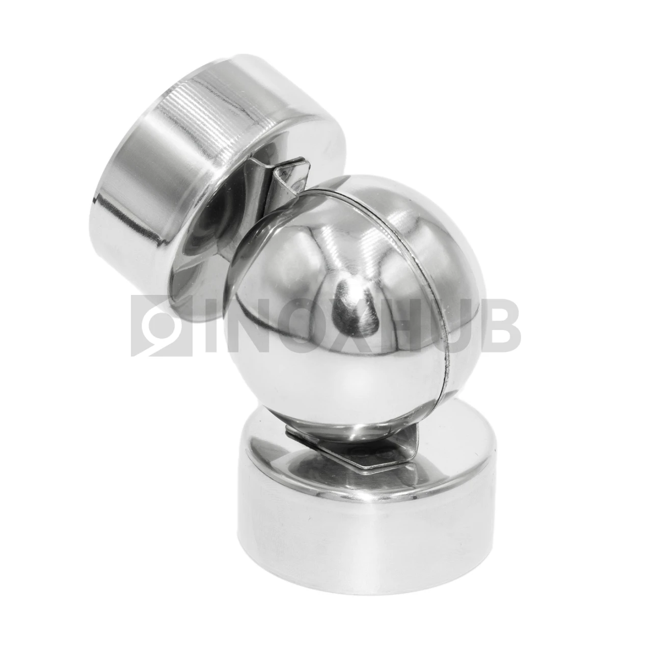 Шаровой поворот для трубы, поручня из дерева или ПВХ. Выполнен из высокопрочной стали AISI 304, имеет полированную поверхность — GRIT 600.