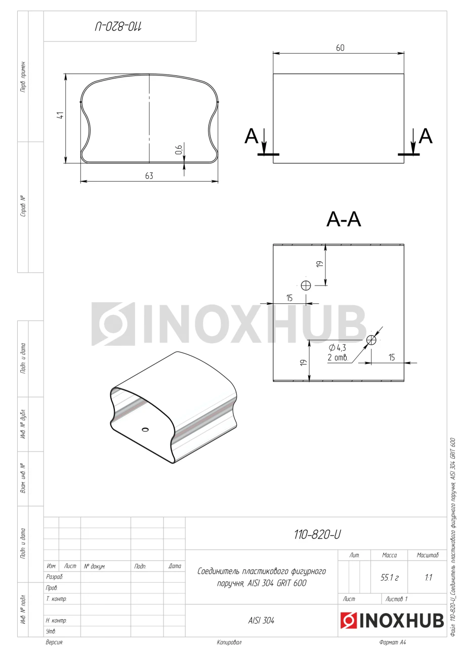 Соединитель пластикового фигурного поручня, AISI 304, GRIT 600