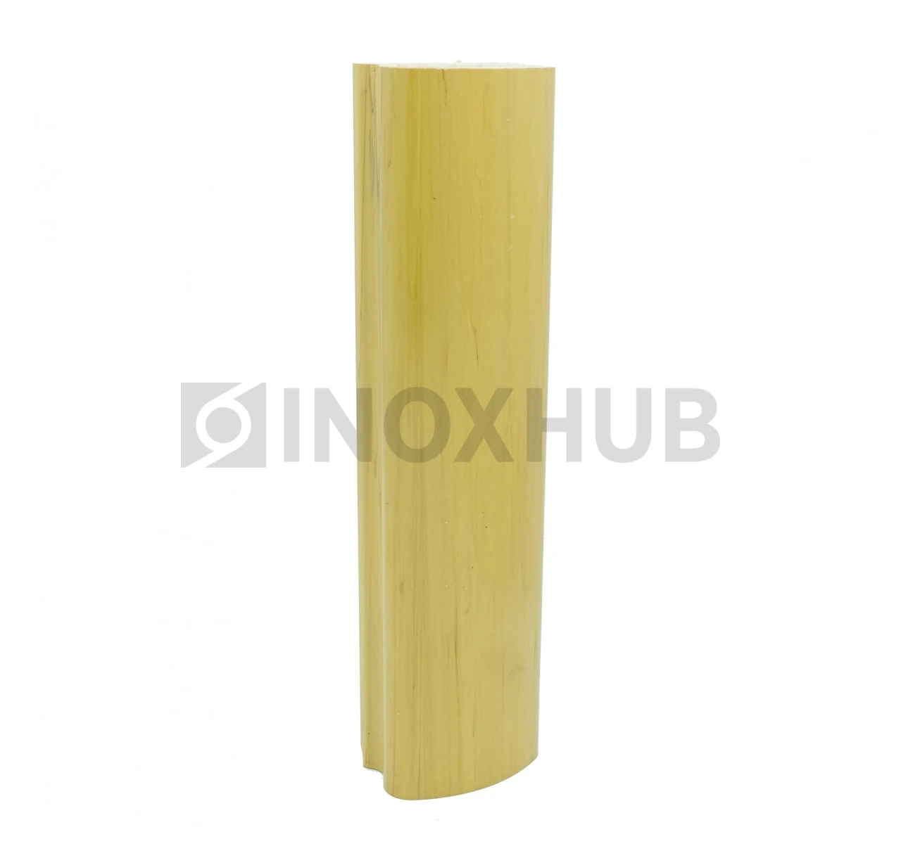 Пластиковый поручень фигурного профиля 38×64 мм предназначен для установки на ограждения и перильные системы. Изготовлен из ПВХ, не впитывает влагу, не гниет, переносит перепады температур в помещении и на улице под навесом. Материал прочный, устойчив к истиранию и ударам. Форма фигурная — эргономичный верх для удобного хвата рукой, нижняя часть с продольным пазом под крепление на металлический профиль или стеклянный модуль. Цвет светлый Бук — светлый жёлто-бежевый оттенок с выраженным древесным рисунком, заметными продольными волокнами, мягкими переходами по тону.