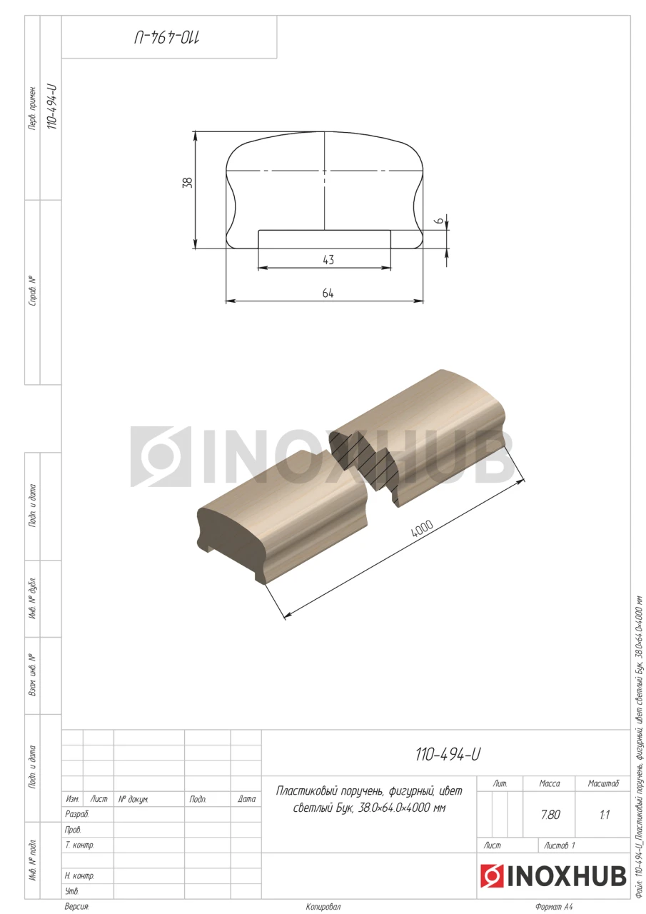 Пластиковый поручень, фигурный, цвет светлый Бук, 38.0×64.0×4000 мм в продаже от 710 ₽/пог. м. руб. Оперативная доставка со склада в Москве. Все товары соответствуют стандартам качества.