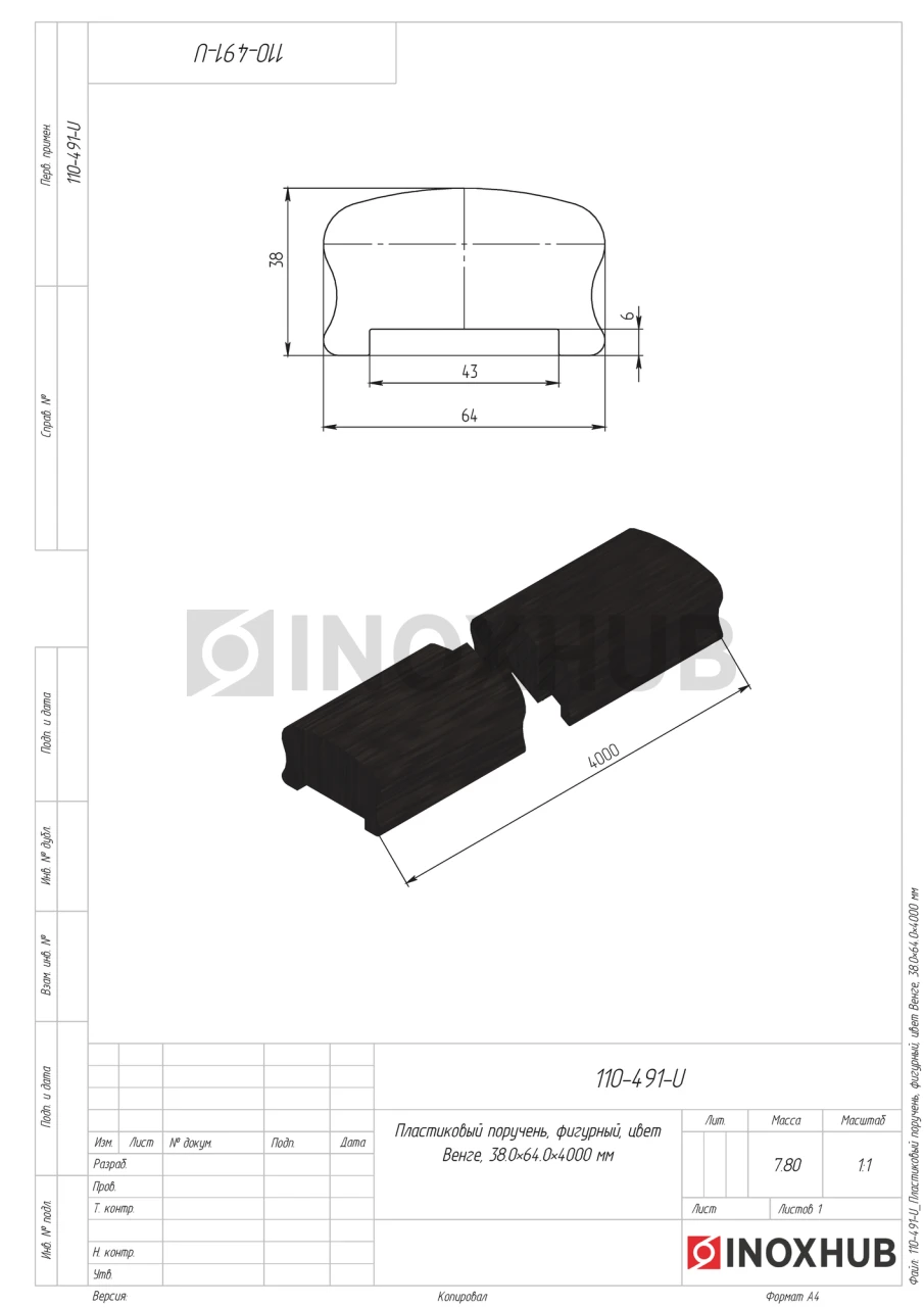 Пластиковый поручень, фигурный, цвет Венге, 38.0×64.0×4000 мм в продаже от 727 ₽/пог. м. руб. Оперативная доставка со склада в Москве. Все товары соответствуют стандартам качества.