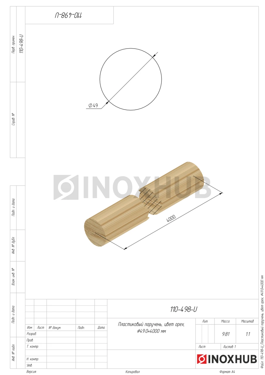 Пластиковый поручень, цвет орех, Ø49.0×4000 мм в продаже и под заказ. Оперативная доставка со склада в Москве. Все товары соответствуют стандартам качества.