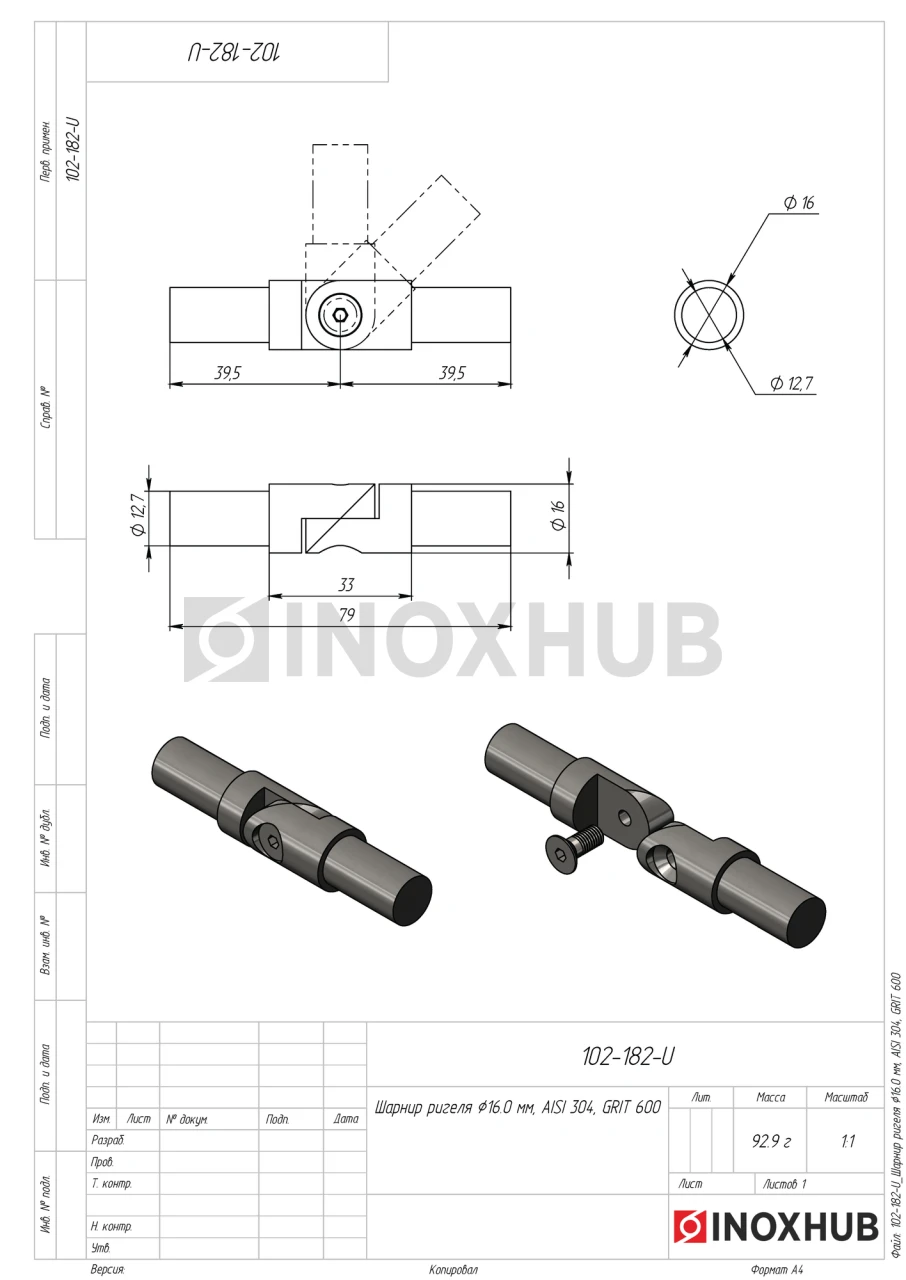 Шарнир ригеля, Ø16.0 мм, AISI 304, GRIT 600
