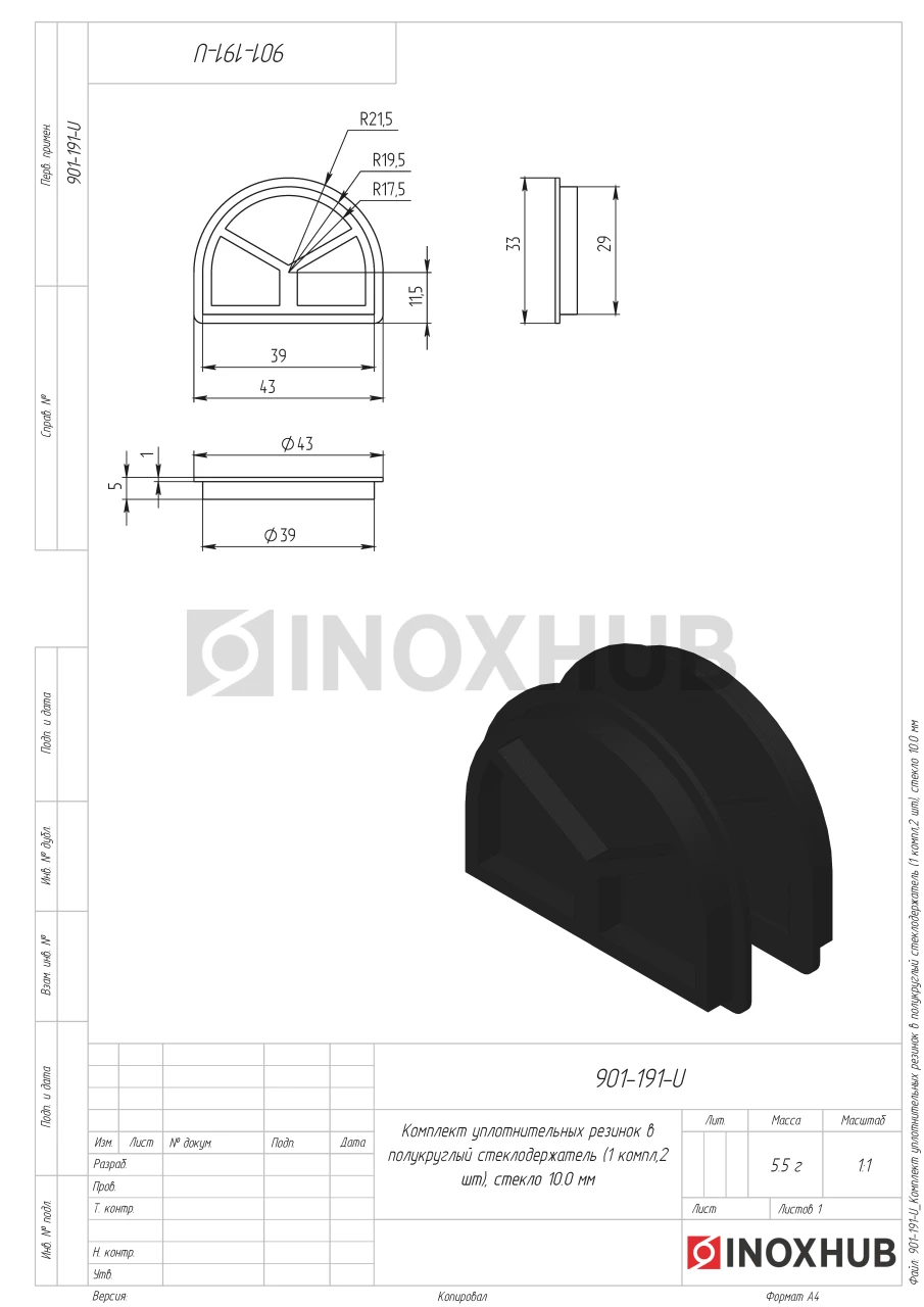 Комплект уплотнительных резинок в полукруглый стеклодержатель штамп. (1 компл/2 шт), стекло 10.0 мм
