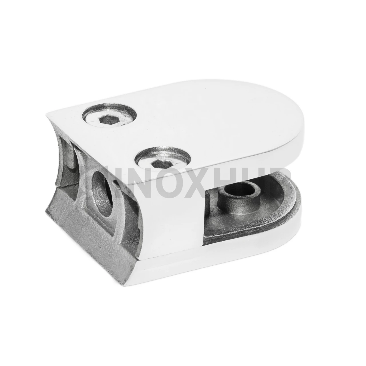 Зажимной стеклодержатель из стали AISI 316 изготовлен методом литья. Крепление обладает высокой прочностью по сравнению со штампованными аналогами, подходит для установки на улице, в местах с повышенной влажностью и с агрессивной средой: вблизи водоемов, бассейнов, на яхтах. Зажим подходит для стеклопанелей толщиной 8 мм. Полированная поверхность GRIT 600 устойчива к коррозии.