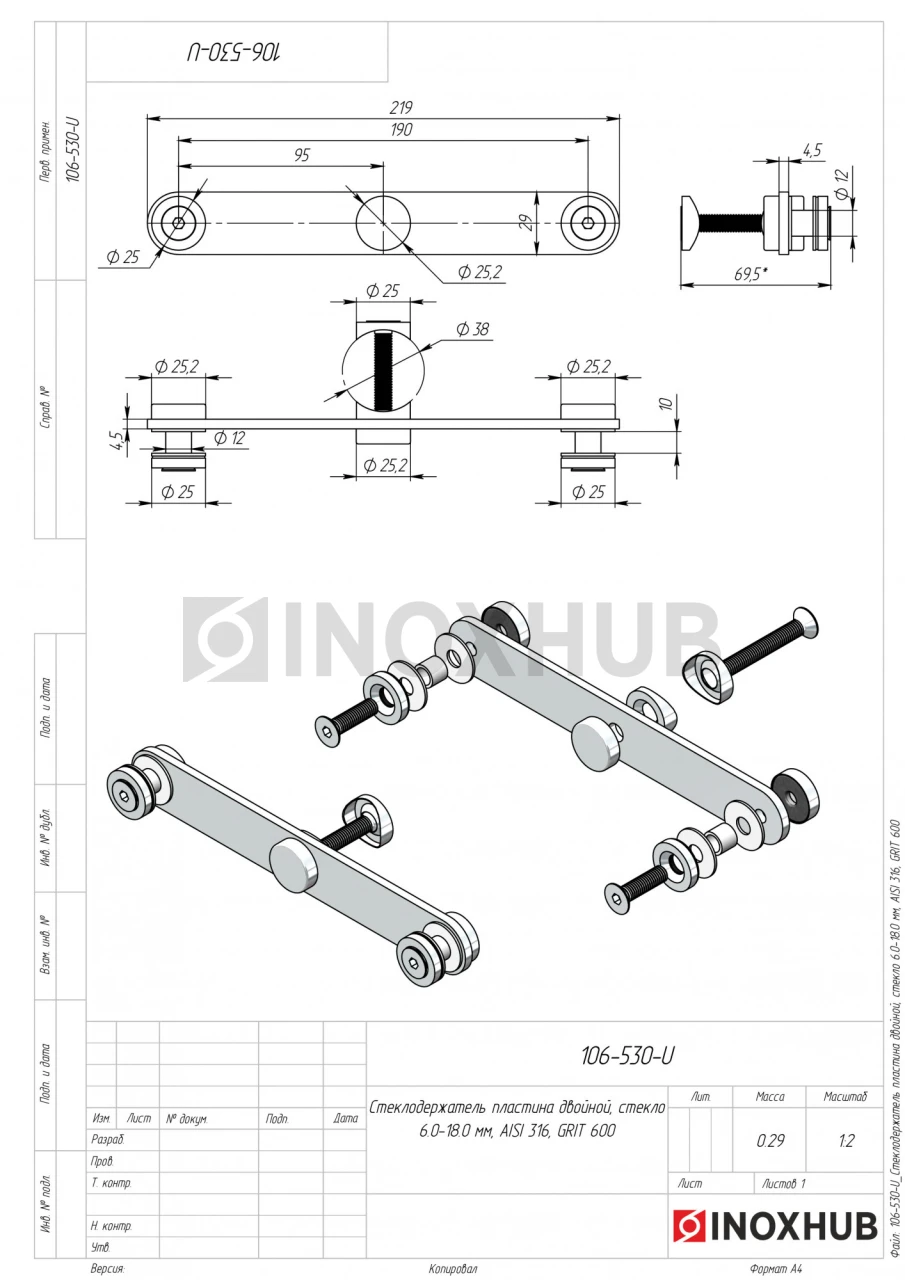Стеклодержатель пластина двойной, стекло 6.0-18.0 мм, AISI 316, GRIT 600