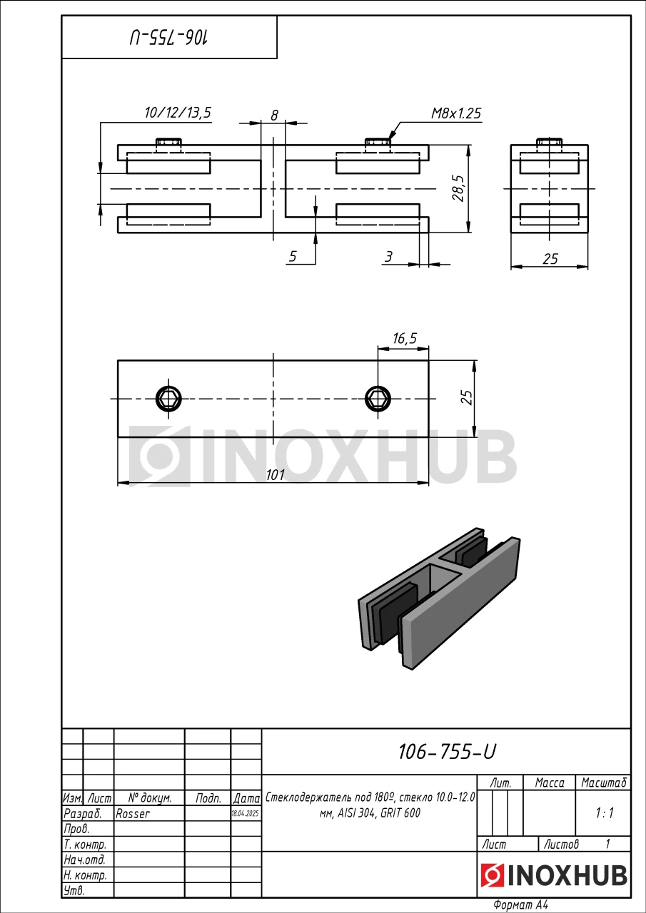 Стеклодержатель под 180º, стекло 10.0-12.0 мм, AISI 304, GRIT 600 в продаже от 1 523 ₽/шт. Оперативная доставка со склада в Москве. Все товары соответствуют стандартам качества.