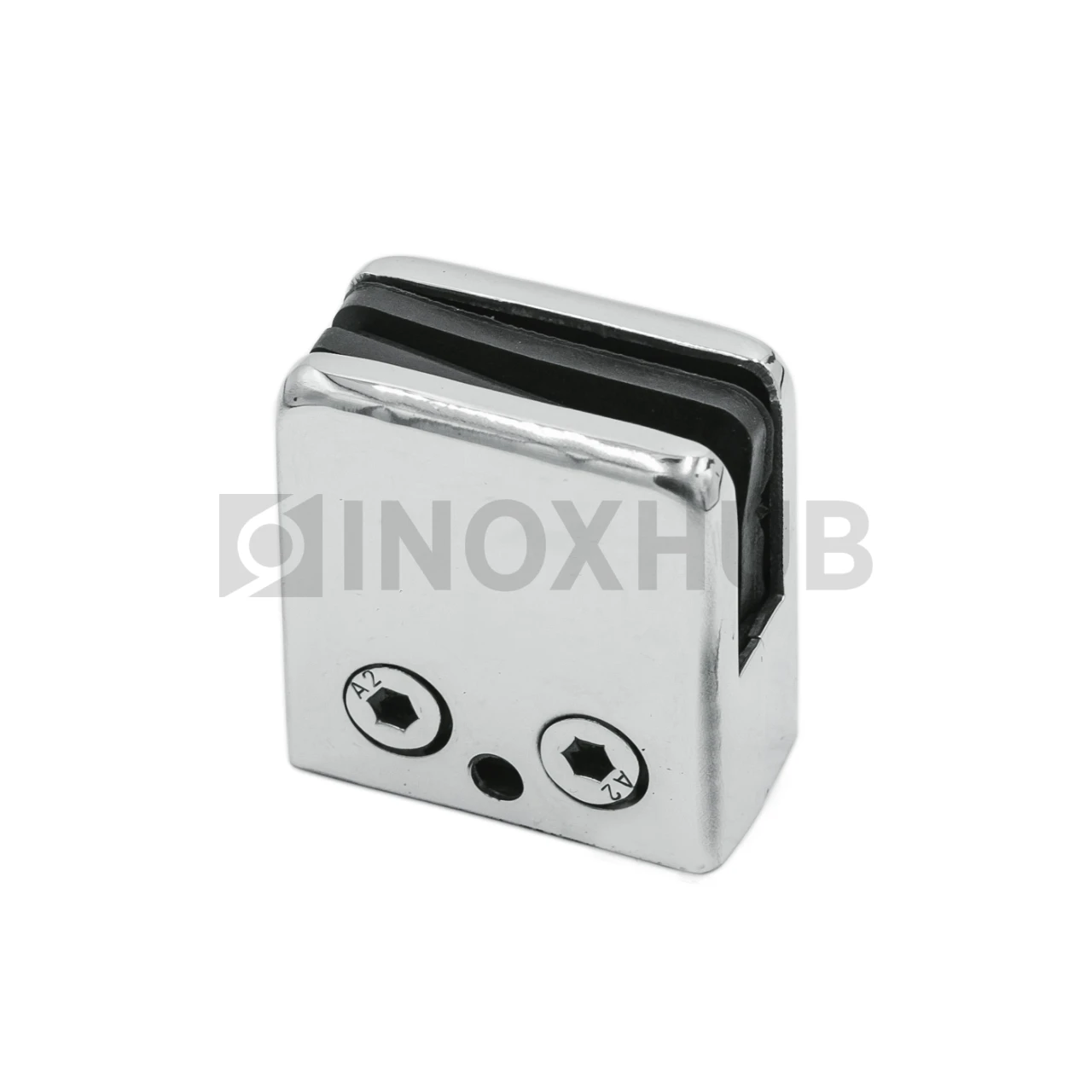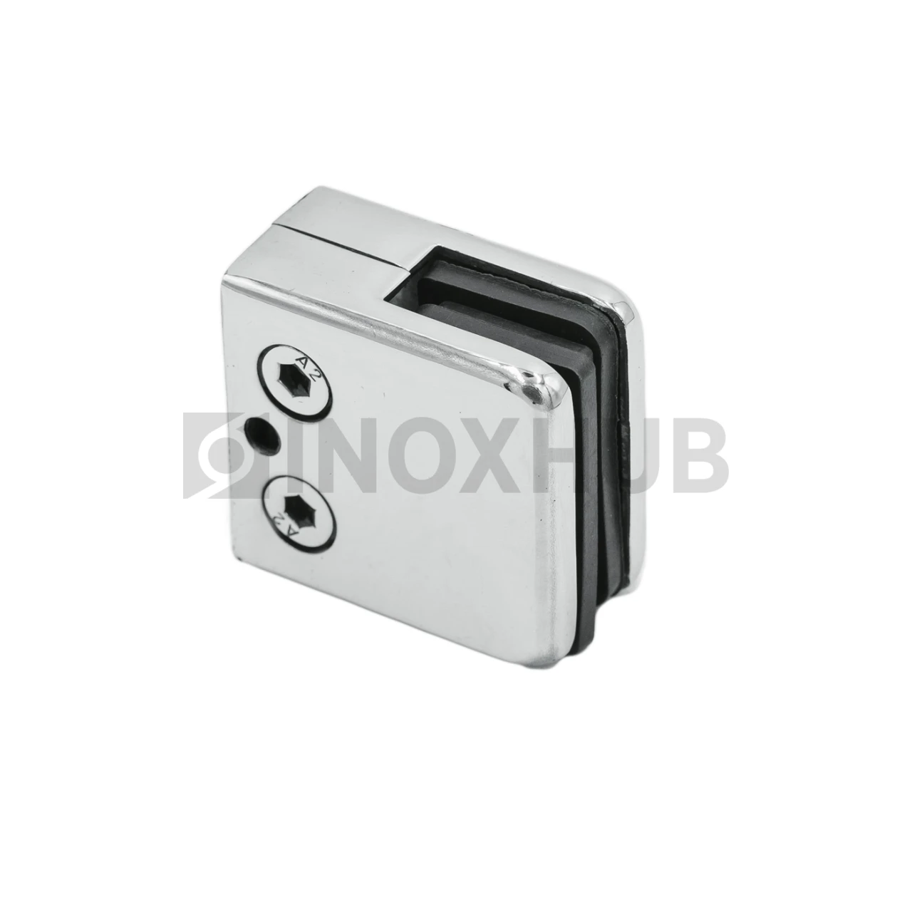 Штампованный стеклодержатель в квадратном исполнении. Выполнен из стали AISI 304. Имеет полированную поверхность GRIT 600.