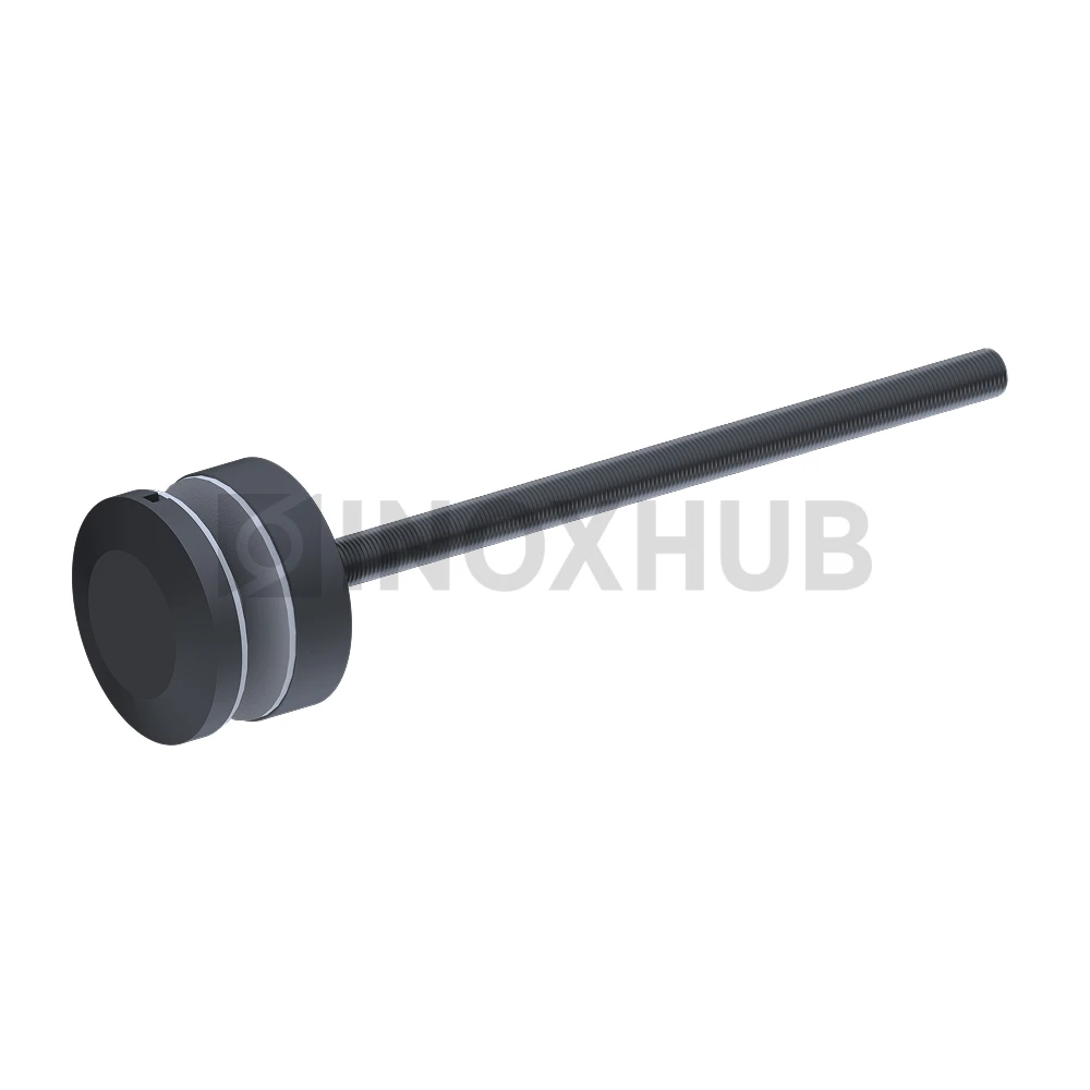 Точечный стеклодержатель с размером шпильки М10 подходит для стекол толщиной 6-30 мм. Шайбы изготовлены из стали марки AISI 304, поэтому деталь можно эксплуатировать на улице. Длинная оцинкованная шпилька выдерживает большую массу стекла. Длина шпильки — 200 мм, диаметр шайб — 50 мм. Черное матовое покрытие.