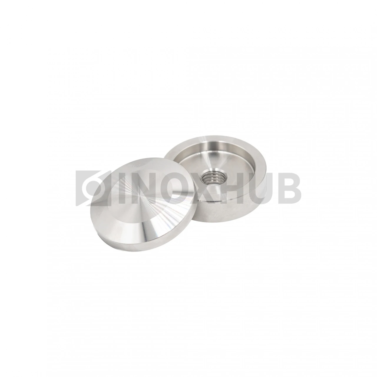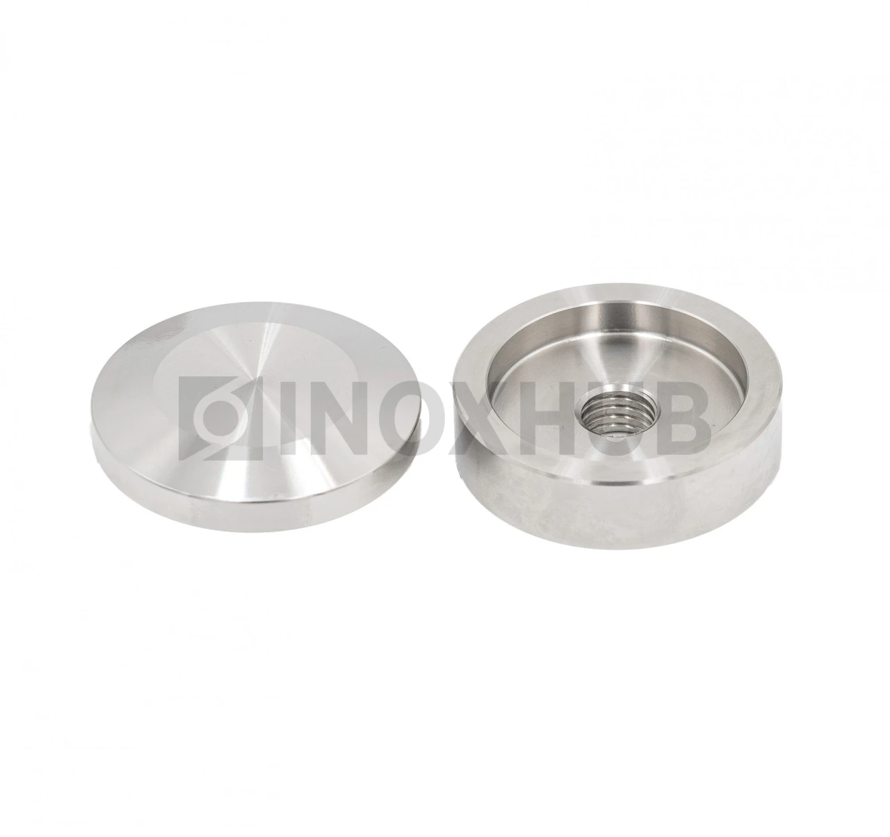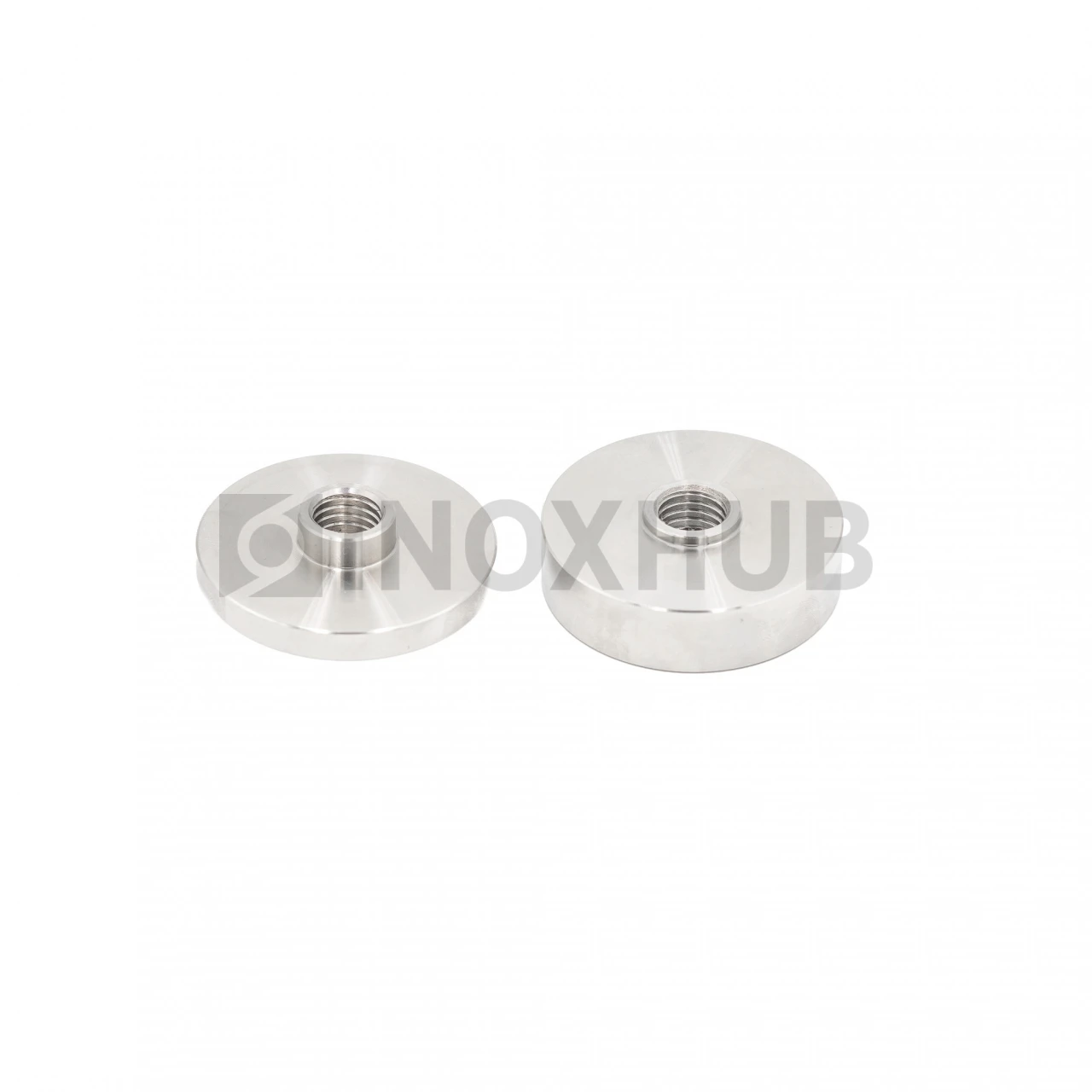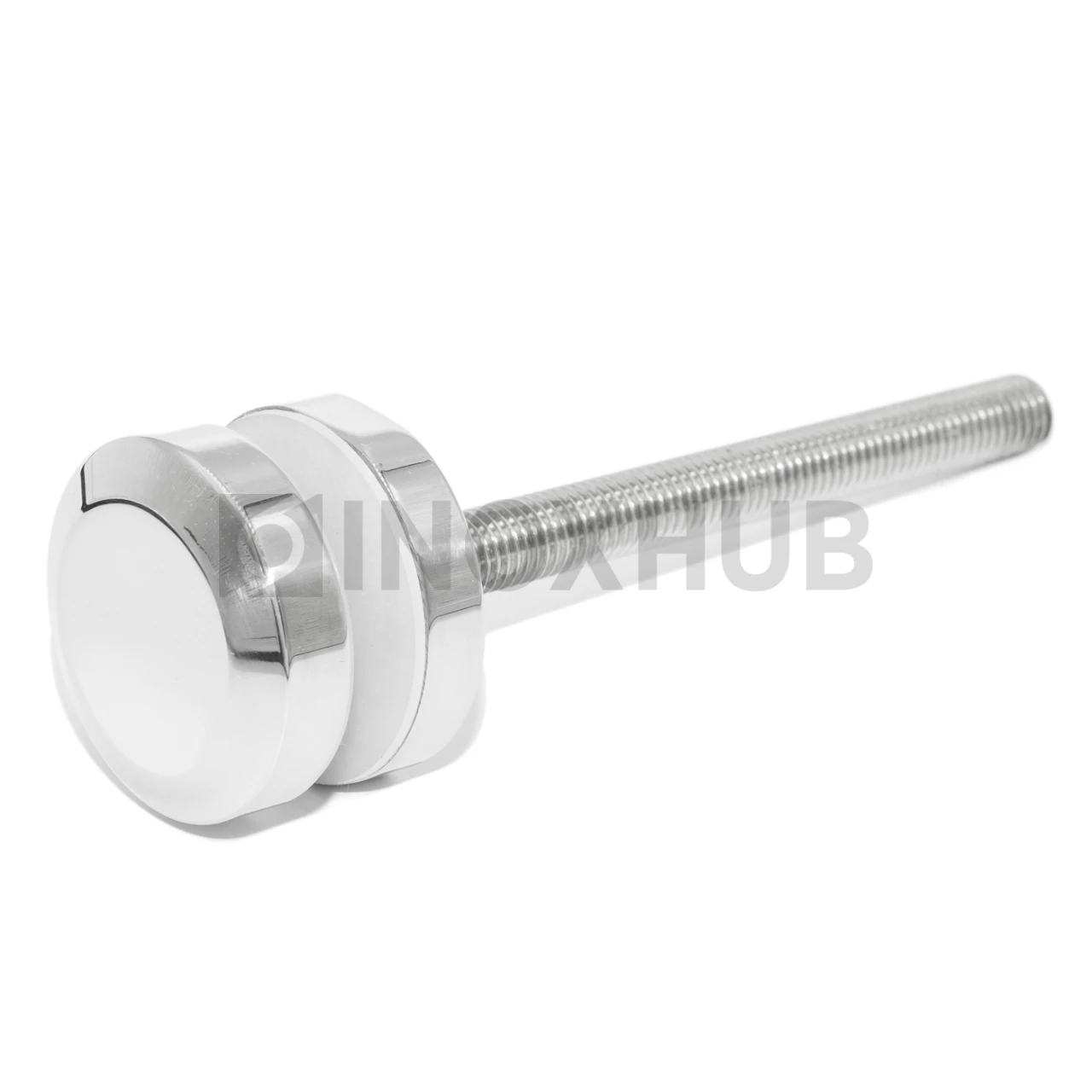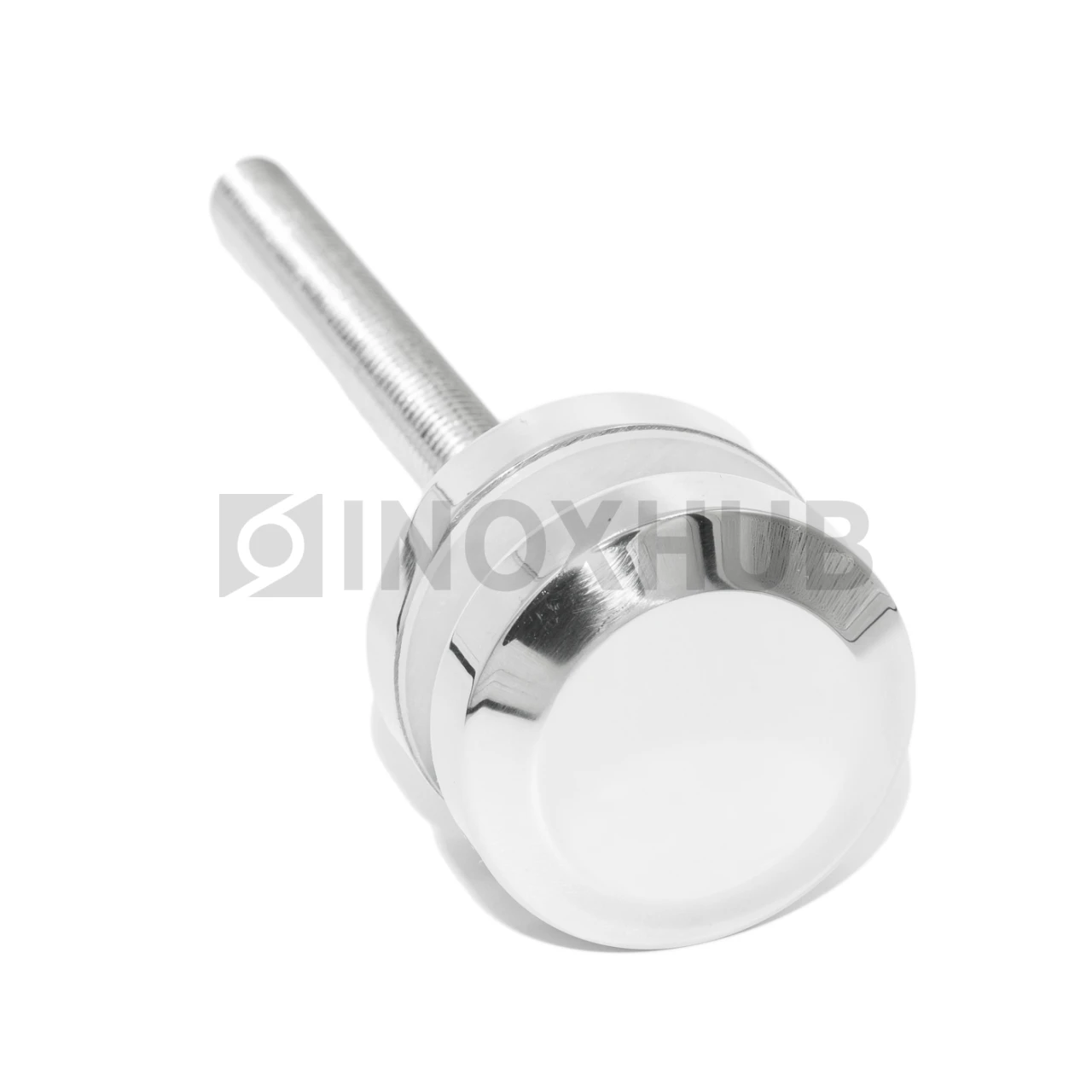 Точечный стеклодержатель размером шпильки М12 подходит для стекол толщиной 6-30 мм. Шайбы изготовлены из стали марки AISI 304, поэтому деталь можно эксплуатировать на улице. Длинная оцинкованная шпилька выдерживает большую массу стекла. Длина шпильки — 200 мм, диаметр шайб — 50 мм. Поверхность шлифованная GRIT 320.