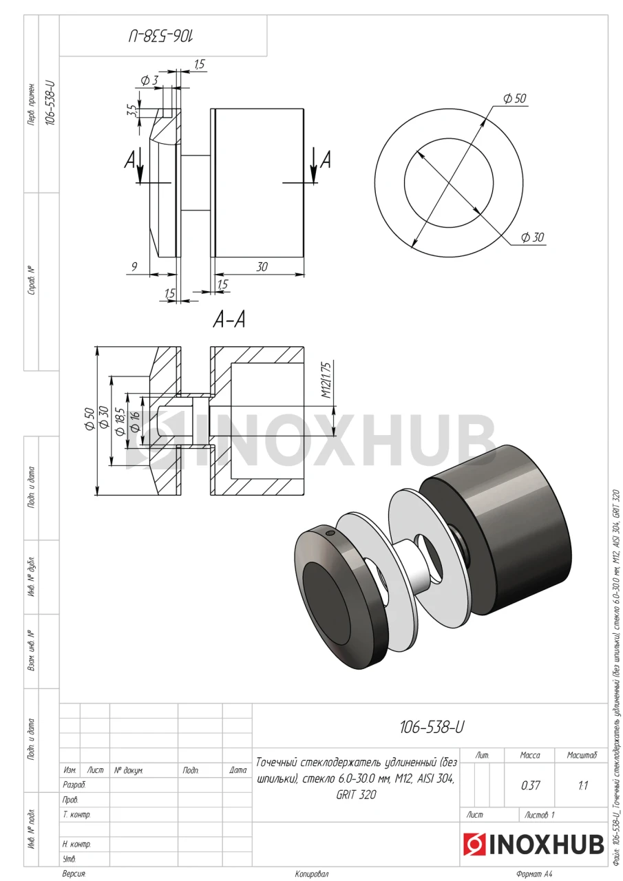 Точечный стеклодержатель удлиненный (без шпильки), стекло 6.0-30.0 мм, М12, AISI 304, GRIT 320 в продаже от 1 778 ₽/шт. Оперативная доставка со склада в Москве. Все товары соответствуют стандартам качества.