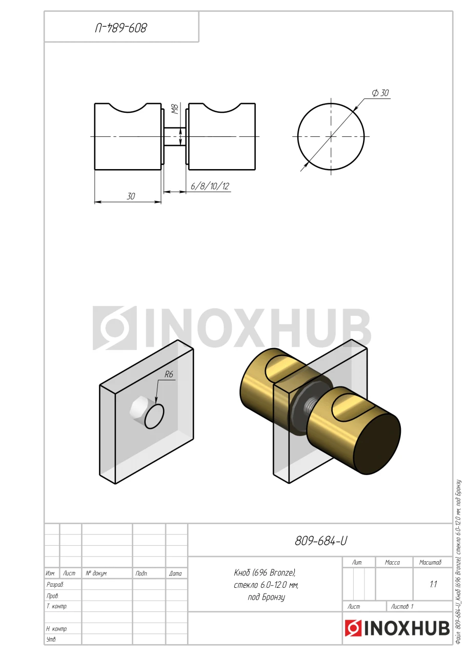 Кноб (696 Bronze), стекло 6.0-12.0 мм, под Бронзу