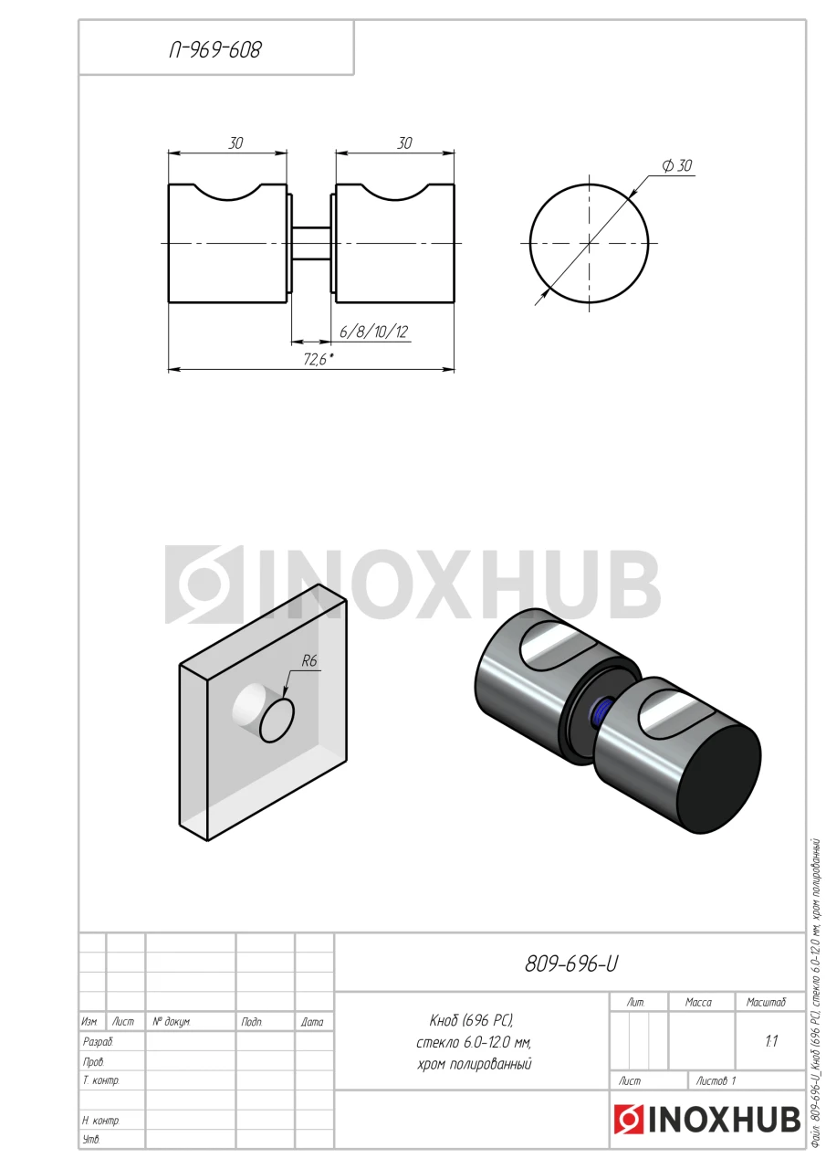 Кноб (696 PC), стекло 6.0-12.0 мм, полированный хром