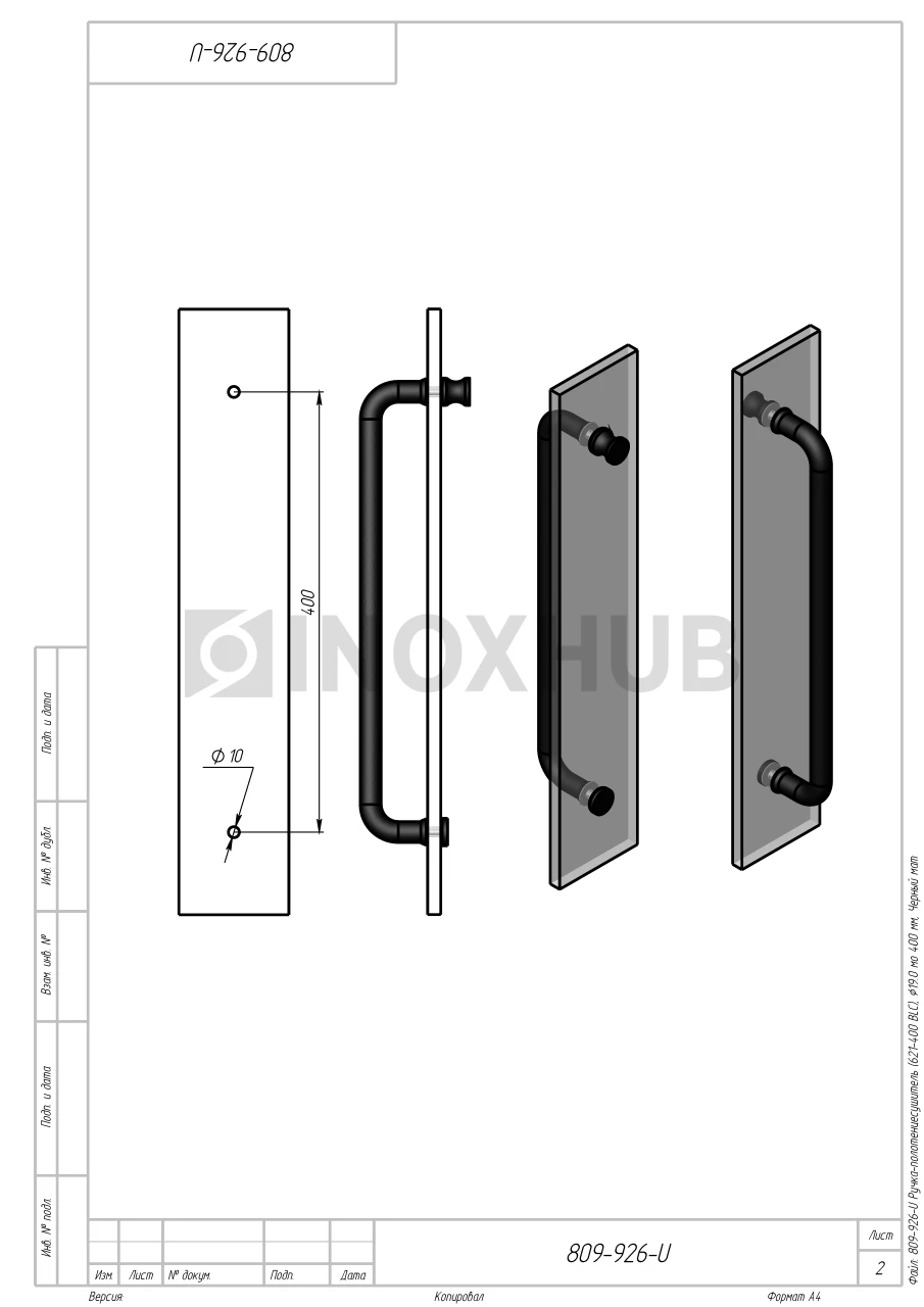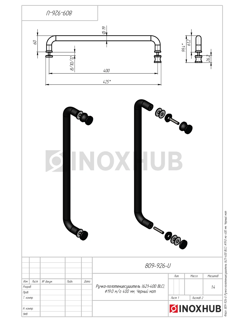 Ручка-полотенцесушитель (621-400 BLC), Ø19.0 м/о 400 мм, Черный мат